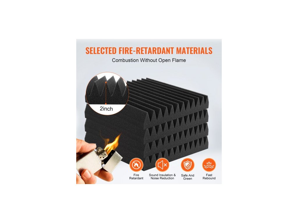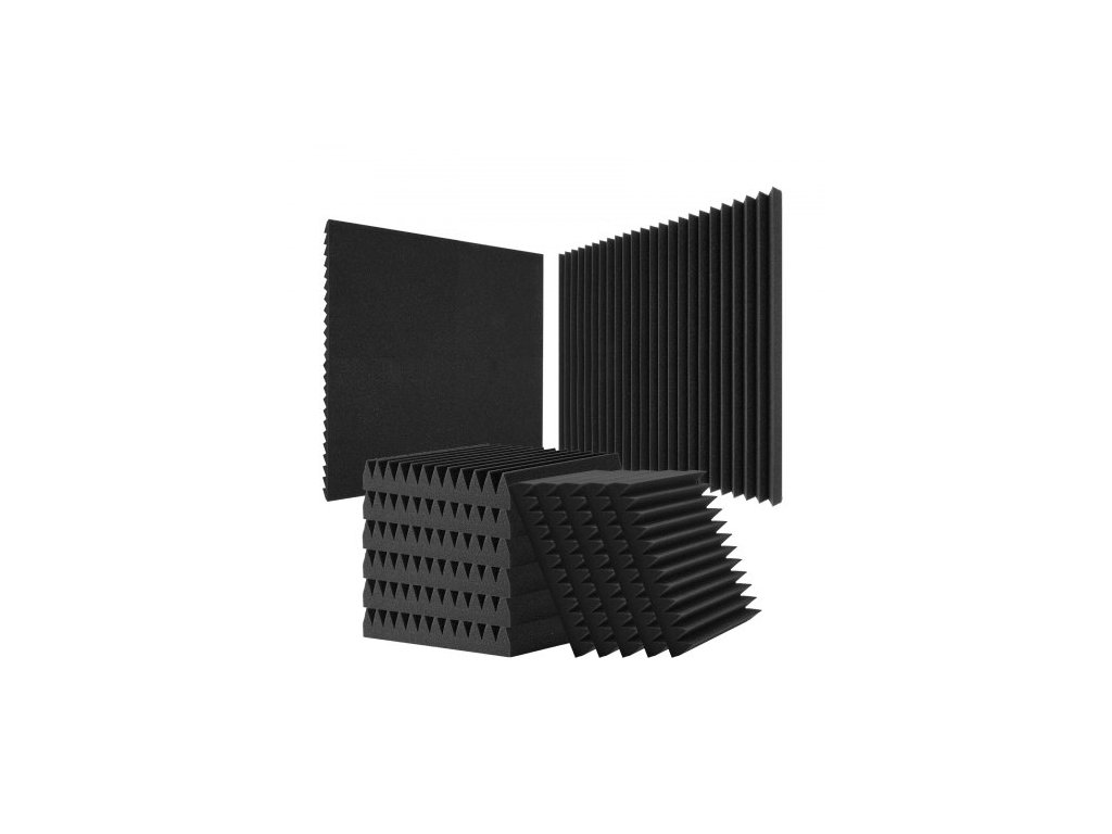 Akustické pěnové panely , balení po 50 kusech 12 x 12 x 2 palce, zvukotěsné stěnové panely s vysokou hustotou, ohnivzdorné akustické panely, zvukově izolační panely pro stěny a stropy studia, černé