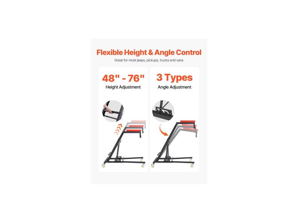 Automobilový pojízdný přívěs , s nastavitelnou výškou 1219–1930 mm, nosnost 400 liber, 4 otočná kolečka, odolný pojízdný přívěs pro opravy a údržbu automobilů
