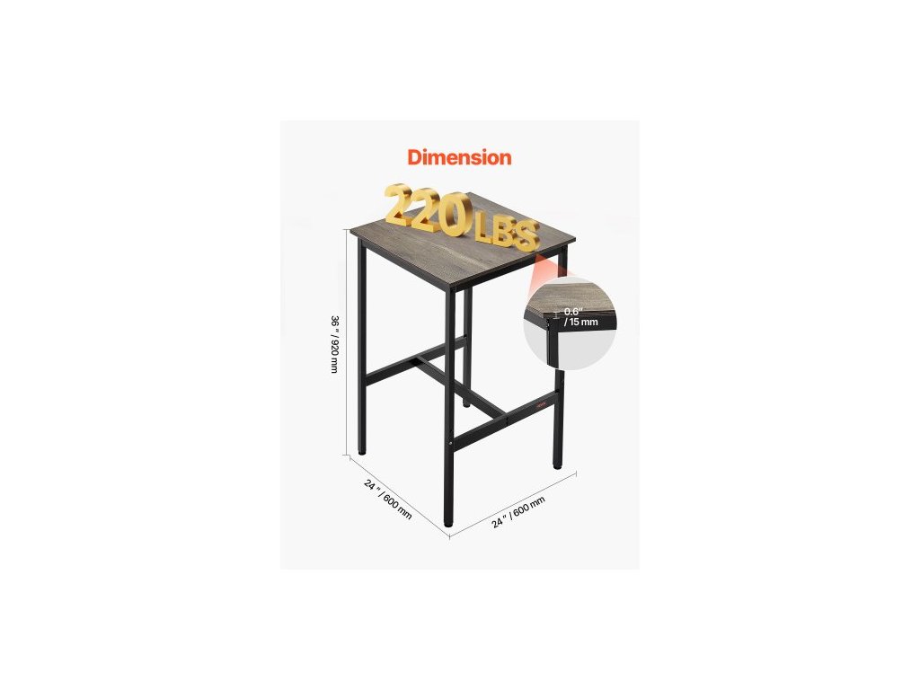 Barový stůl , robustní kovový rám, vysoký hospodský stůl, jídelní stůl do malé kuchyně, koktejlový, kávový, barový pult, snadná montáž, 24x24x36 palců, pro párty v obývacím pokoji, rustikálně hnědá a černá