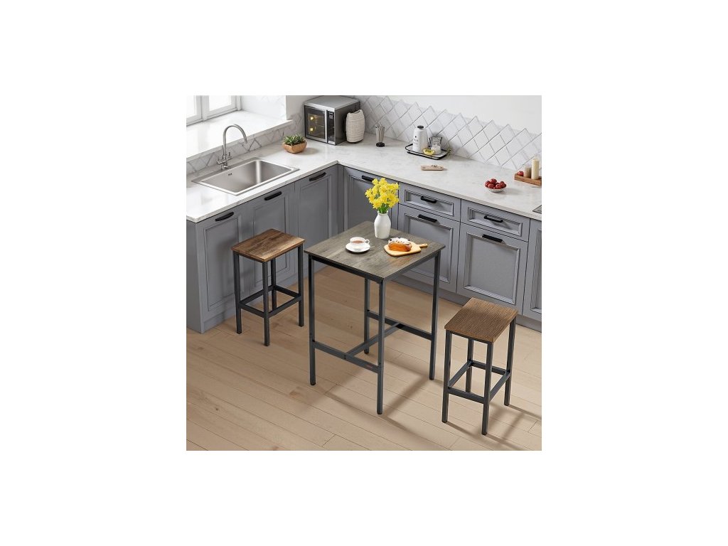 Barový stůl , robustní kovový rám, vysoký hospodský stůl, jídelní stůl v malé kuchyni, koktejlový pult s kávou a barovým pultem, snadná montáž, 24x24x36 palců, pro párty v obývacím pokoji, rustikální hnědá a černá