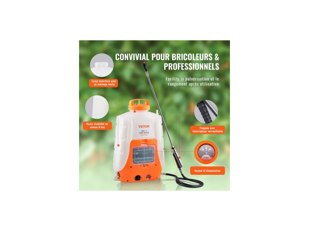 Bateriový zádový postřikovač Nádrž 15,1 l Nastavitelný tlak 0-90 PSI