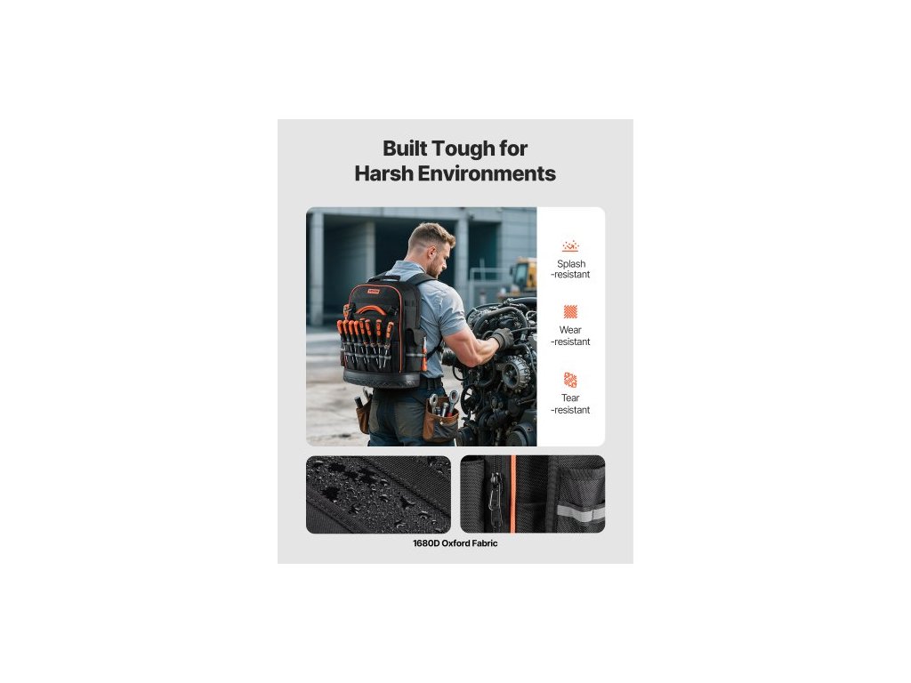 Batoh na nářadí , 64 kapes, Pracovní tašky s organizérem na nářadí pro náročné použití s přihrádkou na notebook a tvarovanou základnou, batoh pro elektrikáře, opraváře a techniky HVAC