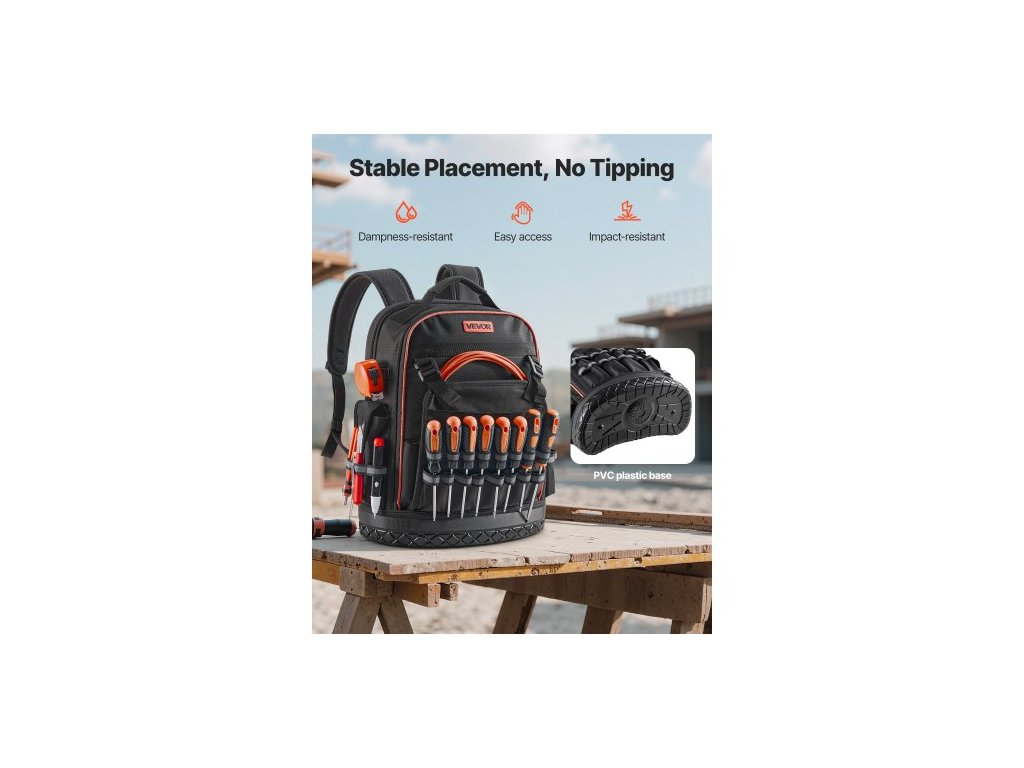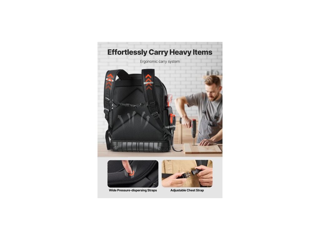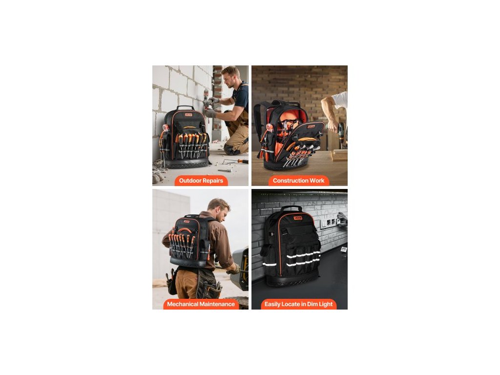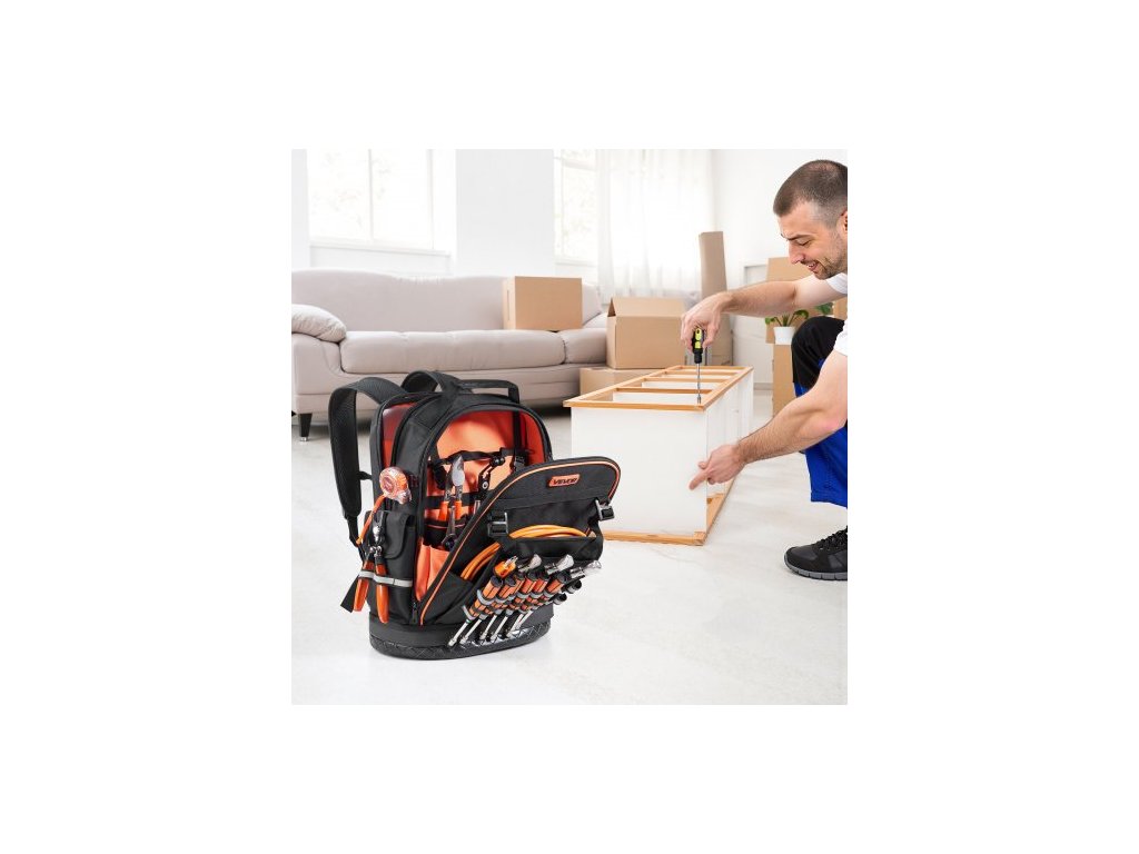 Batoh na nářadí , 64 kapes, organizér na nářadí pro náročné pracovní účely s přihrádkou na notebook a tvarovanou základnou, batoh pro elektrikáře, opraváře a techniky HVAC