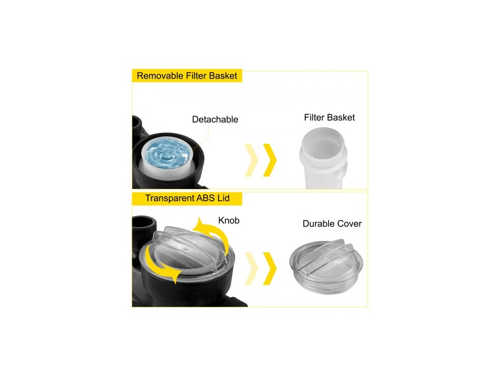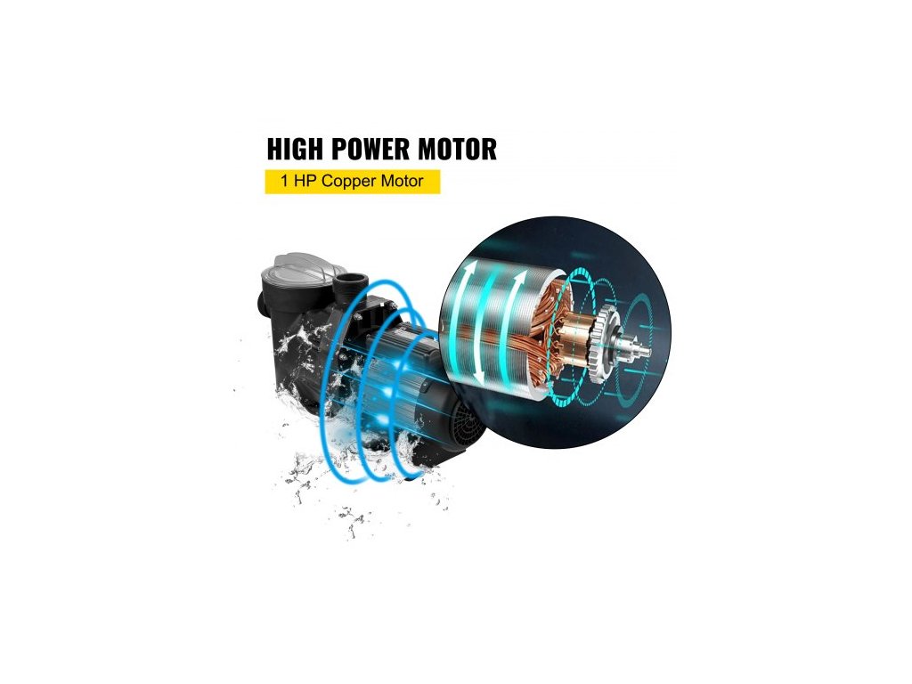 Bazénové čerpadlo 1 HP, 19200 l/h, 750W, bazénové čerpadlo, zapuštěné/zemní, s filtračním košem, motor pro čistou bazénovou vodu, vstupní/výstupní filtrační čerpadlo 1,97" se 2 hadicemi