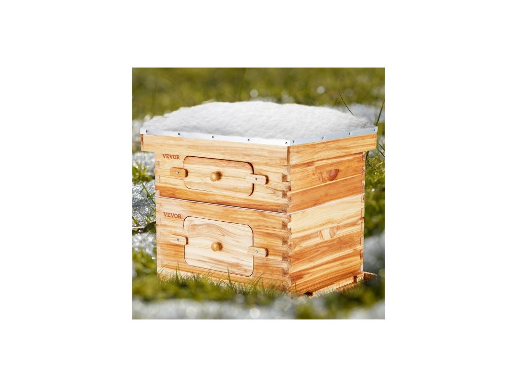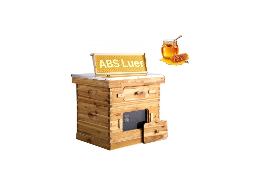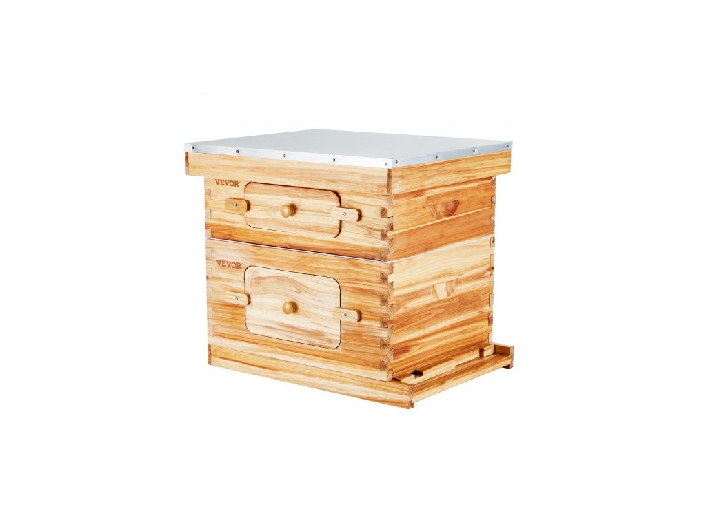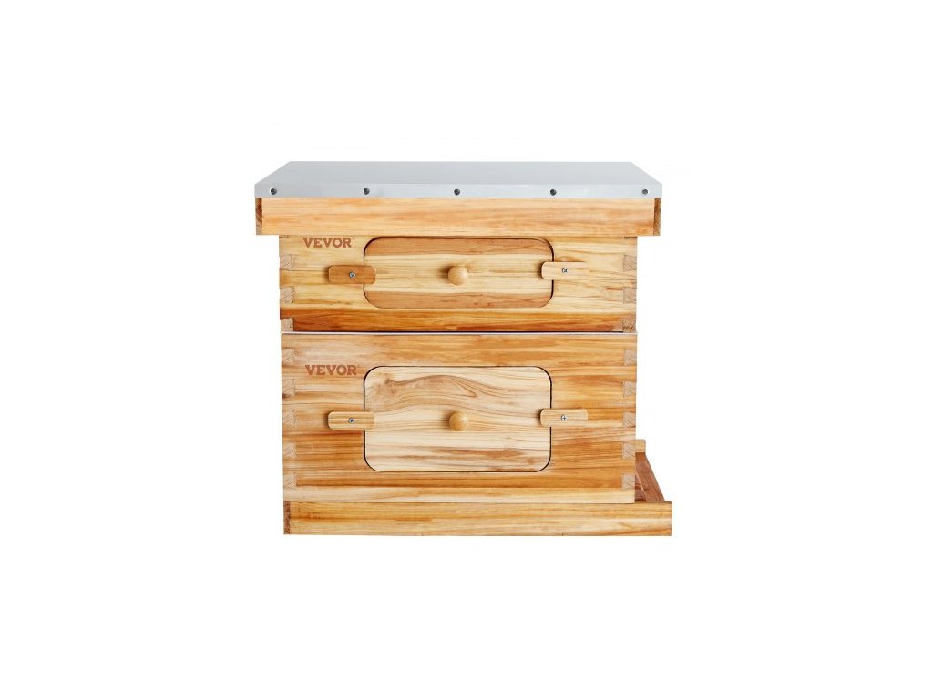 Bee Hive 20rámková startovací sada úlů, jedlové dřevo potažené včelím voskem, 1 hluboký + 1 střední budka na včely, sada úlu Langstroth, průhledná akrylová okénka se základy pro začínající včelaře a profesionální včelaře