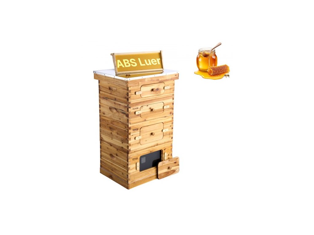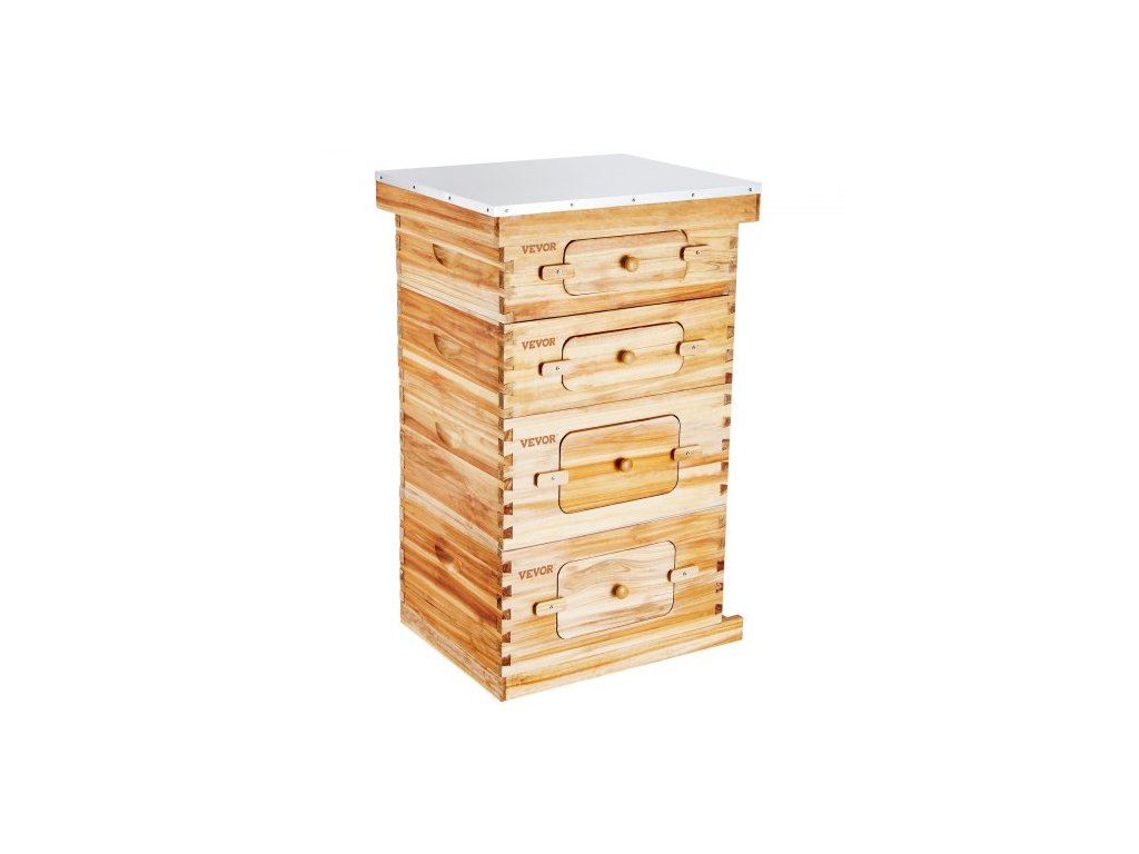 Bee Hive - startovací sada na 40 úlů, jedlové dřevo s včelím voskem, 2 hluboké + 2 střední budky na včely, sada Langstroth Beehive, průhledná akrylová okénka se základy pro začínající včelaře.