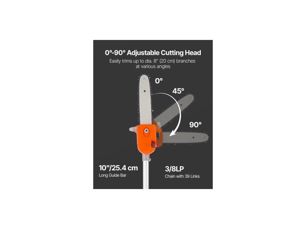 Benzínová vytahovací pila , benzínové vytahovací pily o objemu 43 ccm, dvoutaktní, s řeznou lištou 25,4 cm, akumulátorový vyžínač stromů s otočnou hlavou, výsuvná 2,1 až 3,6 m, výkonná řetězová pila pro prořezávání stromů