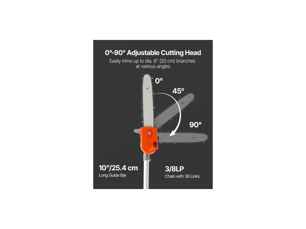 Benzínová vyžínací pila , benzínové vyžínací pily o objemu 43 ccm, dvoutaktní, s řeznou lištou 30,48 cm, akumulátorový vyžínač stromů s otočnou hlavou, výsuvná 2,16 až 3,66 m, výkonná řetězová pila pro zastřihování a prořezávání stromů