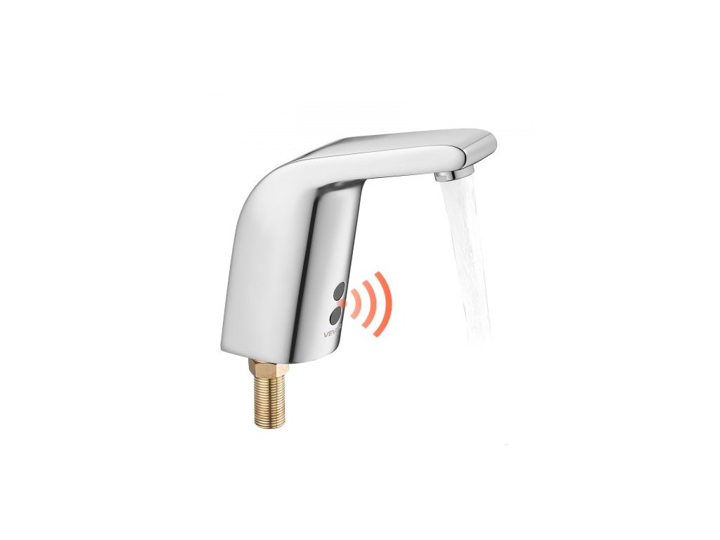 Bezdotyková koupelnová umyvadlová baterie, automatický senzor pohybu, toaletní baterie, studená voda s jedním otvorem, na baterie pro potrubí 9,5 mm, komerční toalety, chromovaná stříbrná