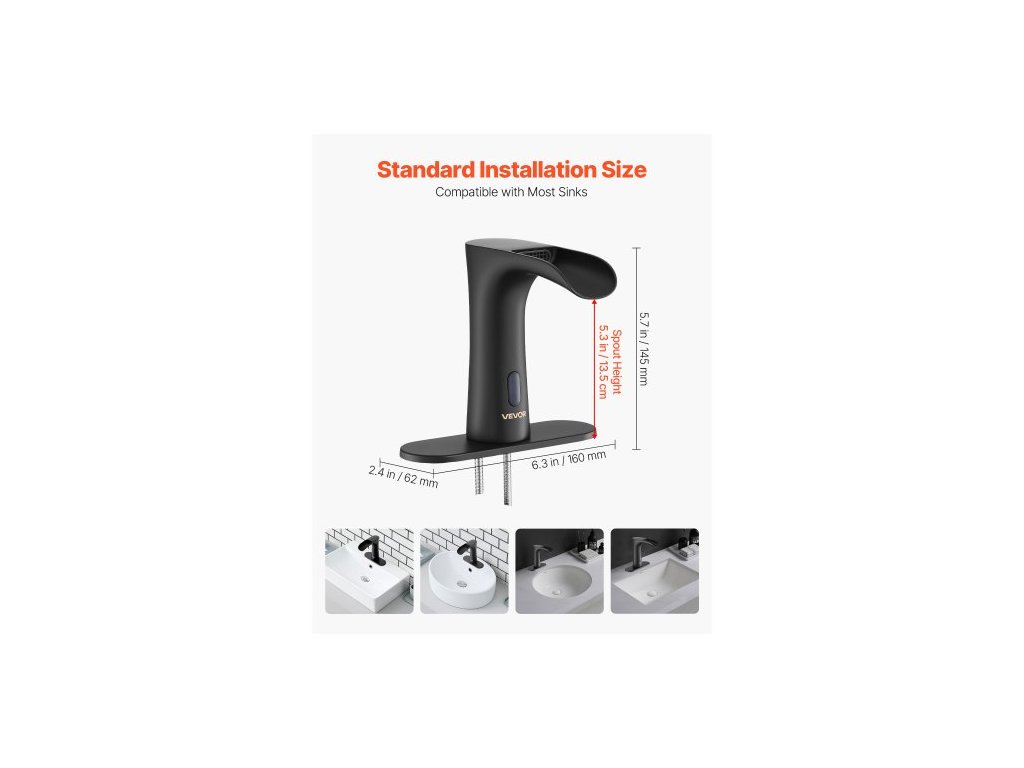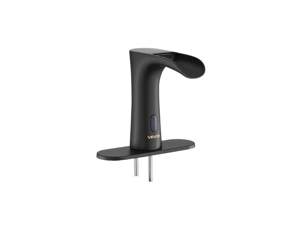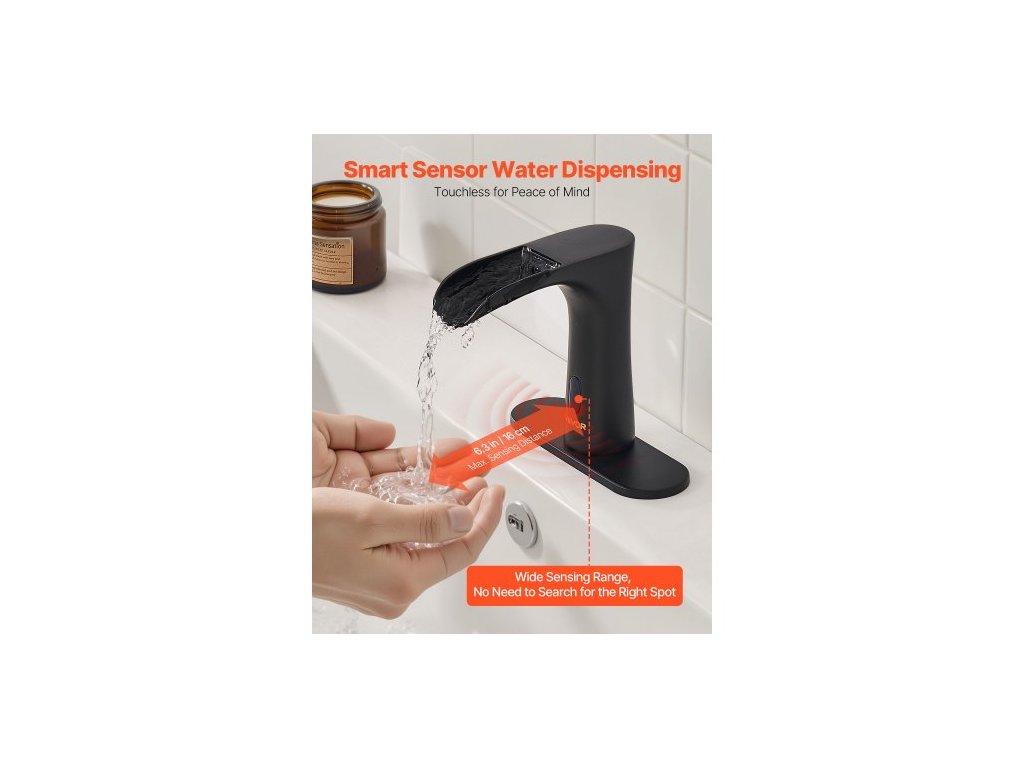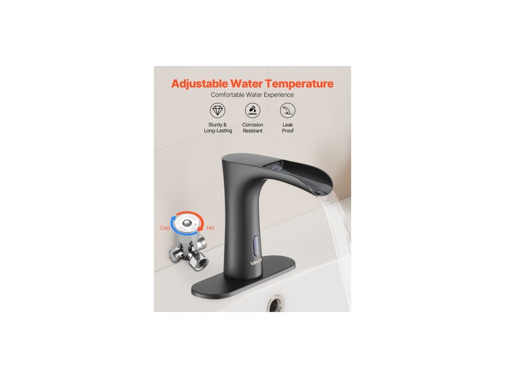 Bezdotyková umyvadlová baterie , automatický senzor pohybu, vodopád, toaletní baterie s krycí deskou, moderní elektronický senzor teplé/studené vody pro potrubí 9,5 mm, komerční, matná černá