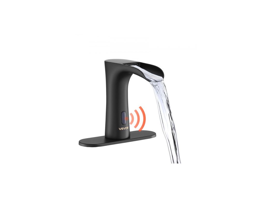 Bezdotyková koupelnová umyvadlová baterie, automatický senzor pohybu, vodopád, toaletní baterie s krycí deskou, moderní elektronický senzor teplé/studené vody pro potrubí 9,5 mm, komerční, matná černá