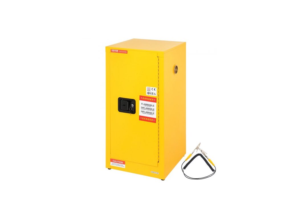 Bezpečnostní skříň na hořlavé kapaliny, 60 l, za studena válcovaná ocelová skříň na skladování hořlavých kapalin, 46 x 46 x 90 cm, odolná proti výbuchu, se 2 nastavitelnými policemi, 1 dveřmi, pro komerční a průmyslové použití, žlutá