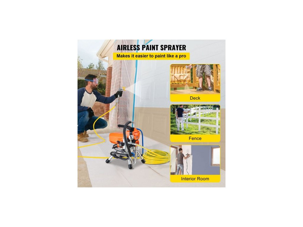 Bezvzduchová stříkací pistole na barvy na stěny s vysokotlakou trubkou, stříkací stroj s vysokým tlakem, 2000W stříkací pistole na barvy na stěny pro interiér i exteriér na vodní a olejovou bázi