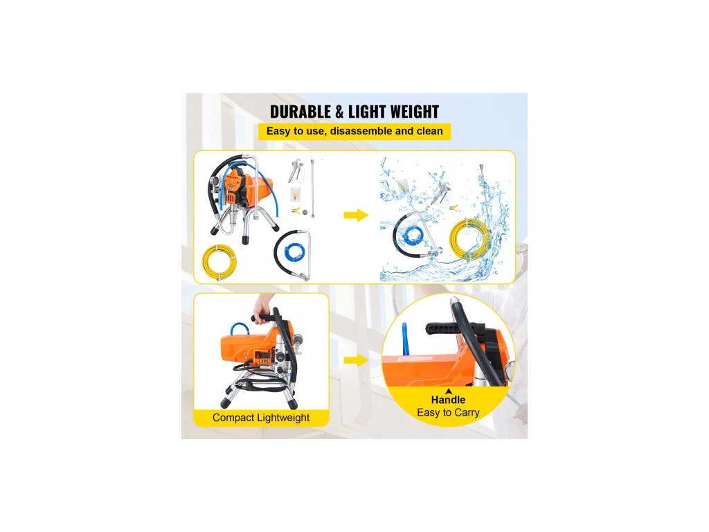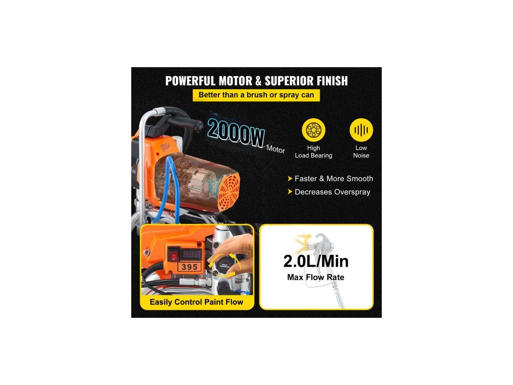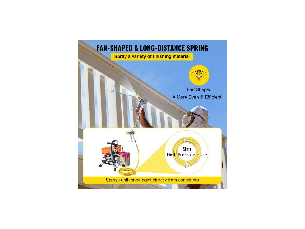 Bezvzduchová stříkací pistole na barvy na stěny s vysokotlakou trubkou, stříkací stroj s vysokým tlakem, 2000W stříkací pistole na barvy na stěny pro použití v interiéru i exteriéru na vodní a olejové bázi