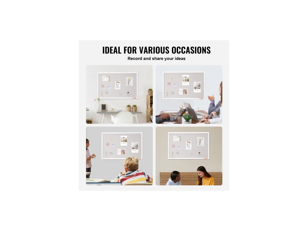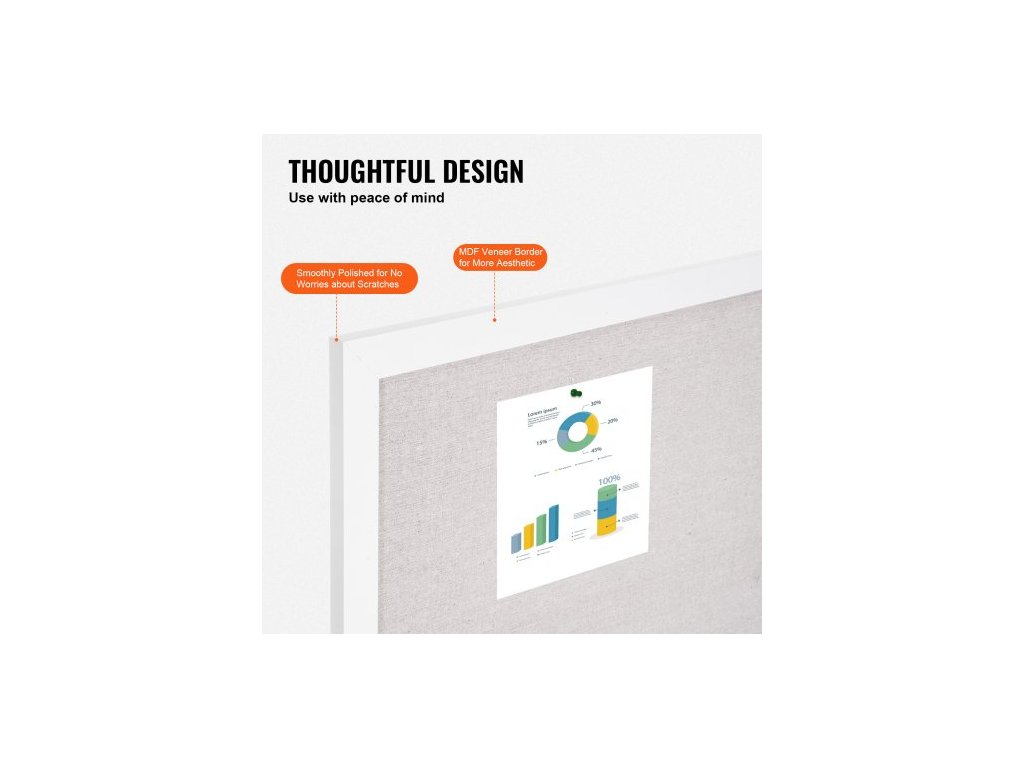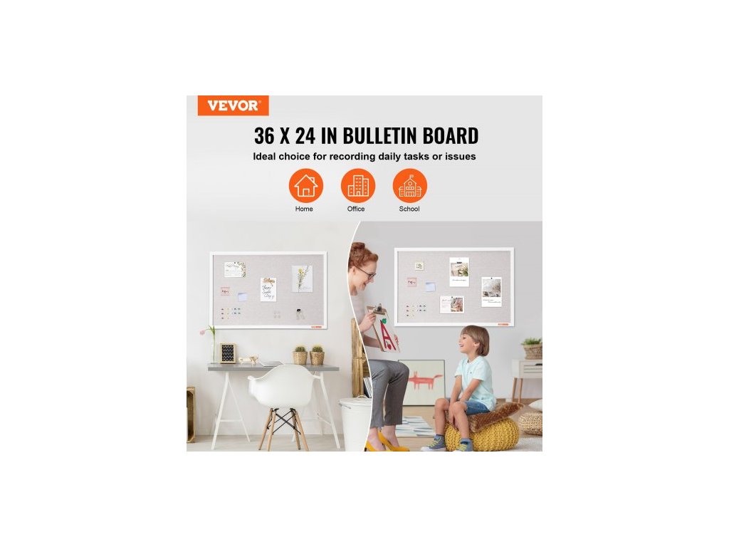 Bílá korková nástěnka 36"x24" s lněným povrchem – Stylová nástěnka k zavěšení na zeď pro domácnost, školu, kancelář – Elegantní a funkční nástěnka