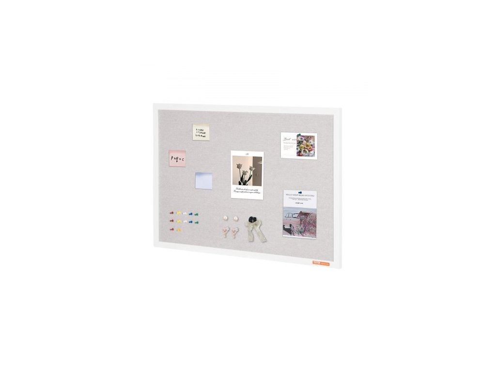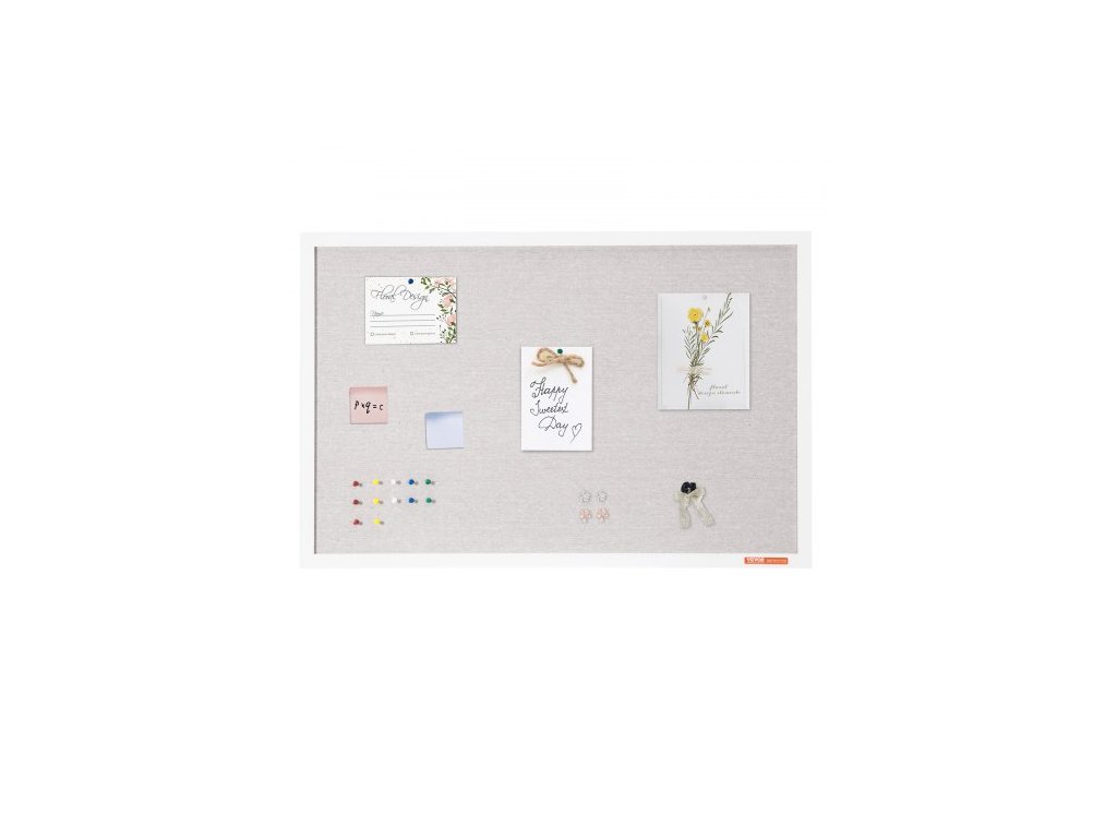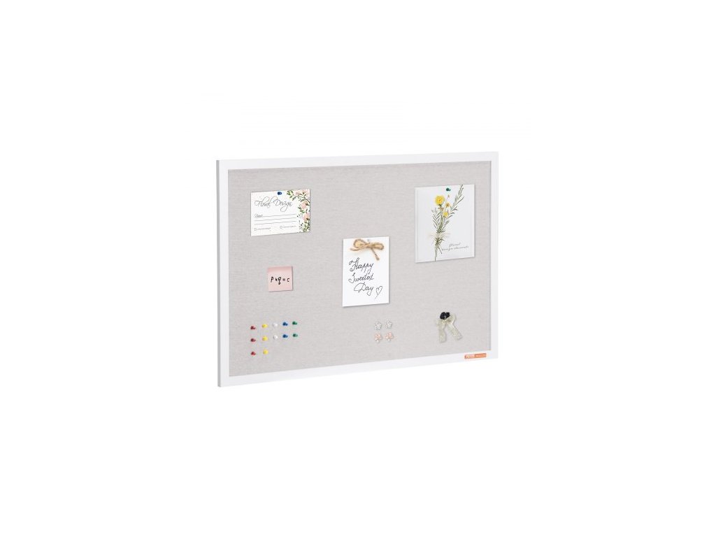 Bílá korková nástěnka 91x61 cm s lněným povrchem – Stylová nástěnka k zavěšení na zeď pro domácnost, školu, kancelář – Elegantní a funkční nástěnka