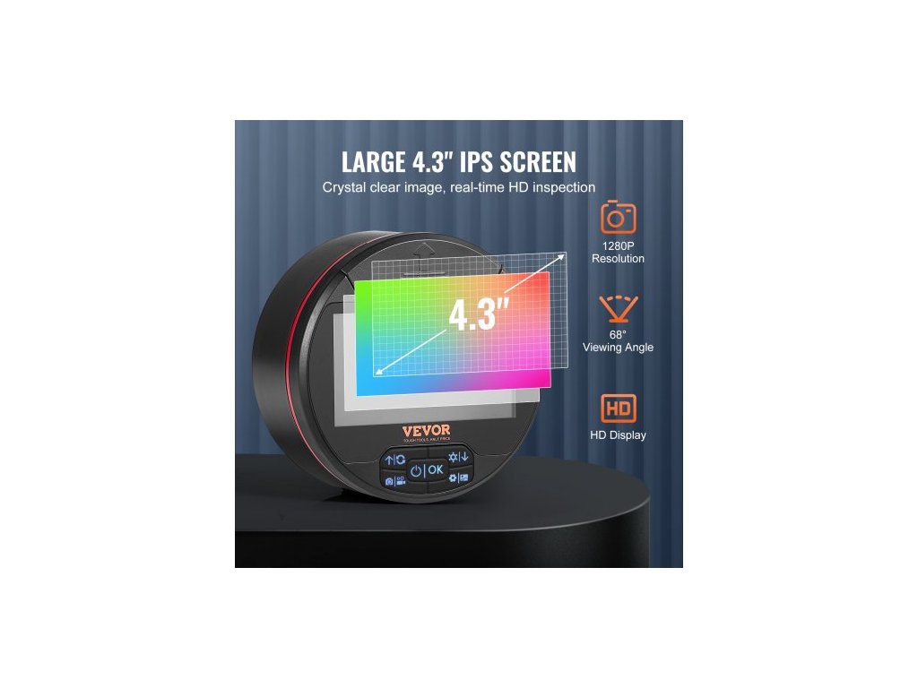 Boroskop s trojitou čočkou a světlem, inspekční kamera s IPS obrazovkou 4,3" s 8 + 2 světly, vodotěsná kamera s hadím dosahem IP67 pro automobilový průmysl, instalatérství (kabel 16,4 stop, karta 32 GB)