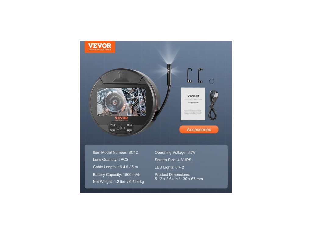 Množství objektivů: 3 ks,Kapacita baterie: 1500 mAh,Velikost obrazovky: 4,3" IPS,Provozní napětí: 3,7 V,Číslo modelu položky: SC12,Délka kabelu: 16,4 stopy / 5 m,Rozměry produktu: 5,12 x 2,64 palce / ?130 x 67 mm,LED světla: 8 + 2,Čistá hmotnost: 1,2 lbs / 0,544 kg