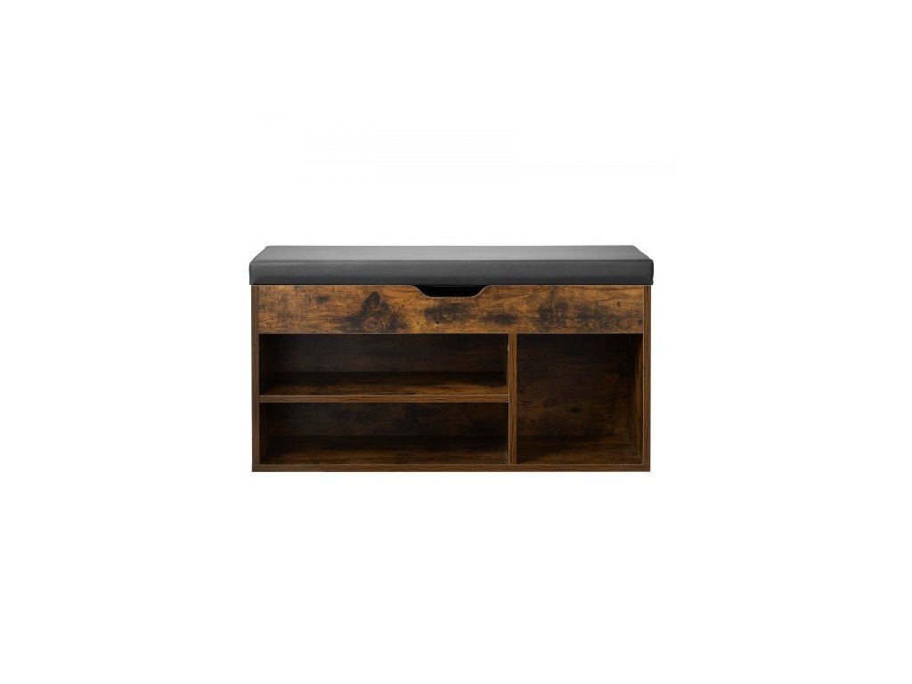 Botník do předsíně, organizér na boty 805 x 305 x 445 mm se skrytým úložným prostorem s výklopným horním výklopem, lavice o nosnosti 136 kg s polštářovým sedákem a 3 skříňkami do předsíně, obývacího pokoje, ložnice, hnědá + černá