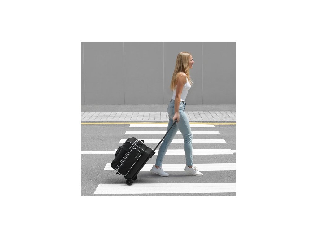 Bowlingová taška na koule , bowlingová taška na 2 koule s kolečky a dvojitým válečkem, se samostatnou přihrádkou na boty (až do velikosti US 16) a velkou kapsou na příslušenství, zatahovací rukojeť s délkou až 1050 mm
