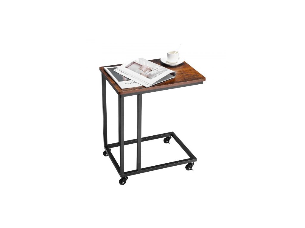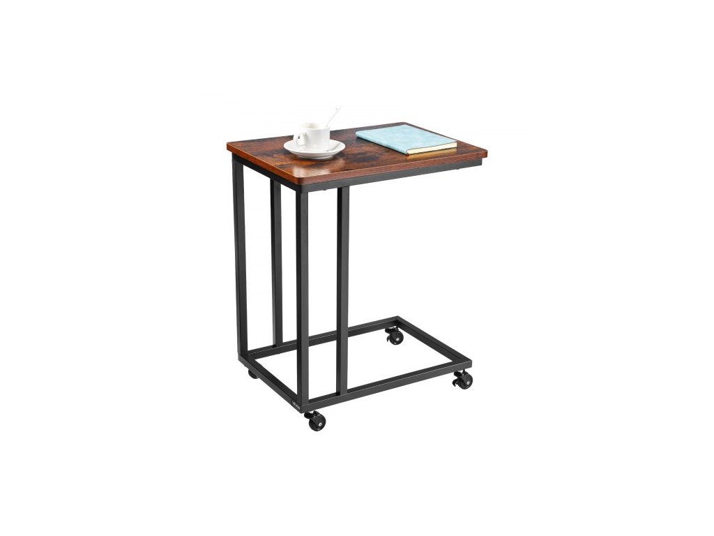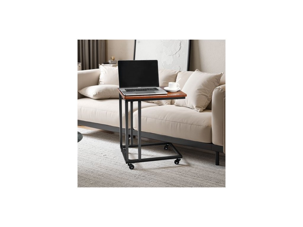 C Table, odkládací stolek ve tvaru C s kovovým rámem a kolečky, přenosný stojan ve tvaru C do obývacího pokoje, ložnice, kanceláře, 19,69 x 13,78 x 23,82 palce, odkládací stolky na notebook, hnědý a černý