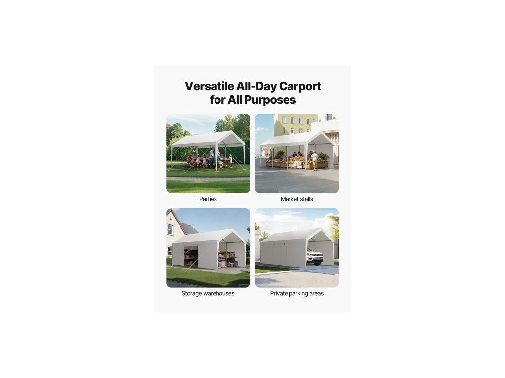 Carport, venkovní stříška na auto 12 x 20 stop, pitná voda s odnímatelnými bočními stěnami a dveřmi, odolný přístřešek na auto, odolný proti UV záření a vodě, celoroční ochrana pro automobil a loď, bílá