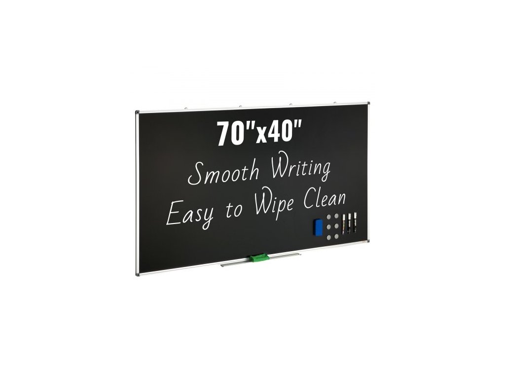 Černá tabule , velká tabule 70 x 40 palců s hliníkovým rámem, černé tabule, suché mazání, obsahuje 1 magnetický mazací a 3 fixy, černý povrch, pro kancelář, domácnost a školu