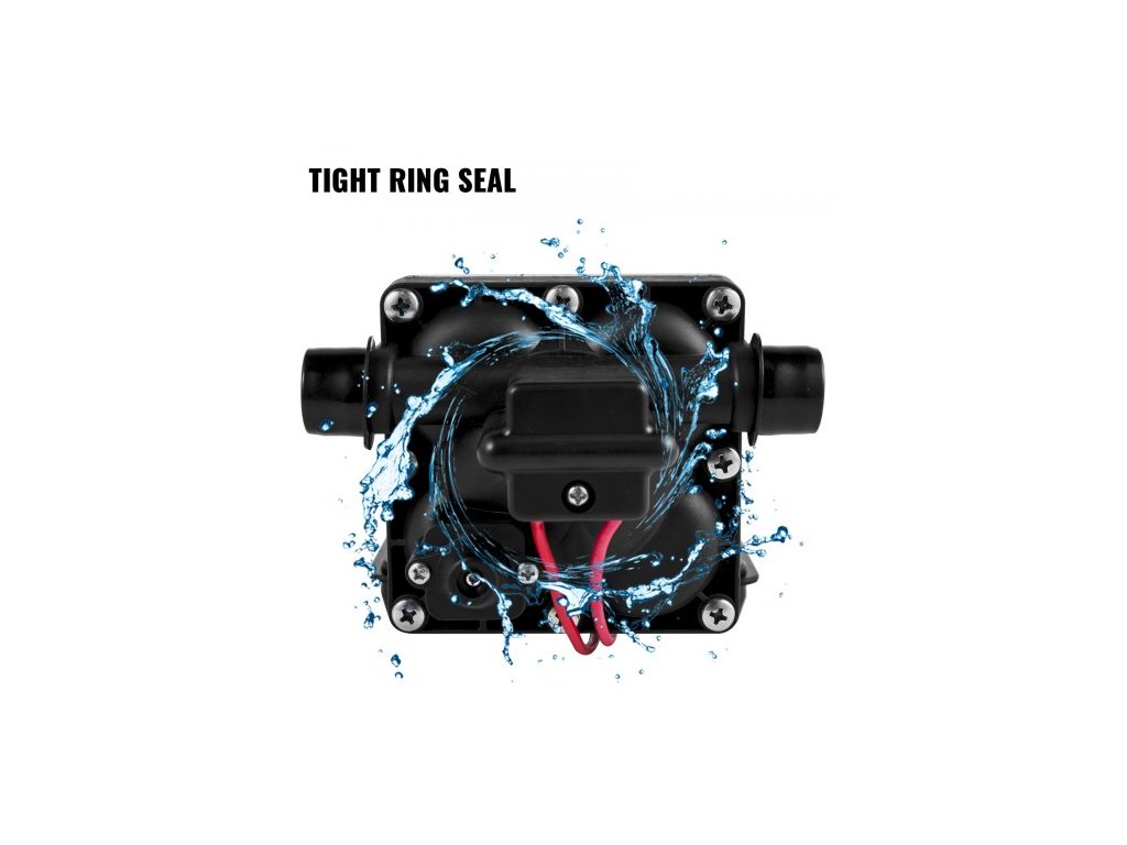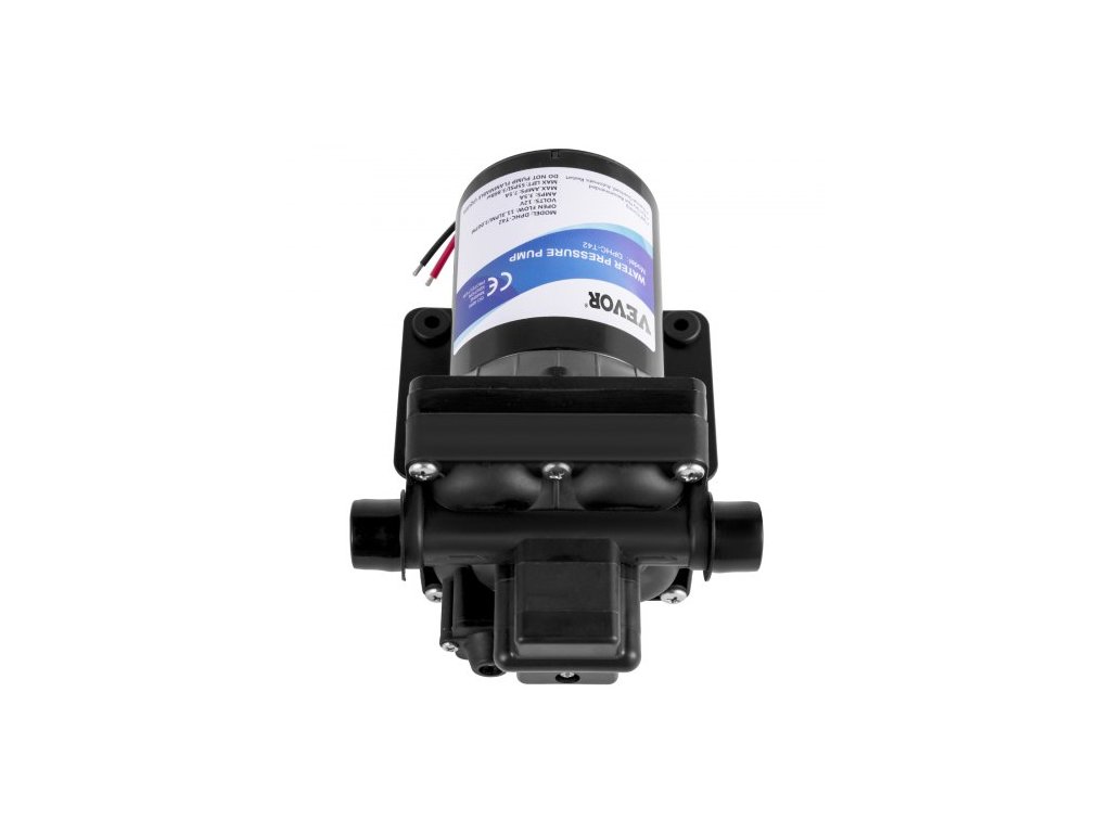 Jmenovitý průtok: 3 GPM, Napětí: 12V DC 7,5–11,3 A, Ventil: EPDM, Materiál: Polypropylenové tělo, Těsnění motoru: O-kroužek, Teplota kapaliny: 60°C/140°F, Vstup/Výstup: 1/2 palce NPT, Vlastnosti: Vestavěný zpětný ventil/tepelná ochrana, Max. Tlak: 45 psi, Schéma: Santopren