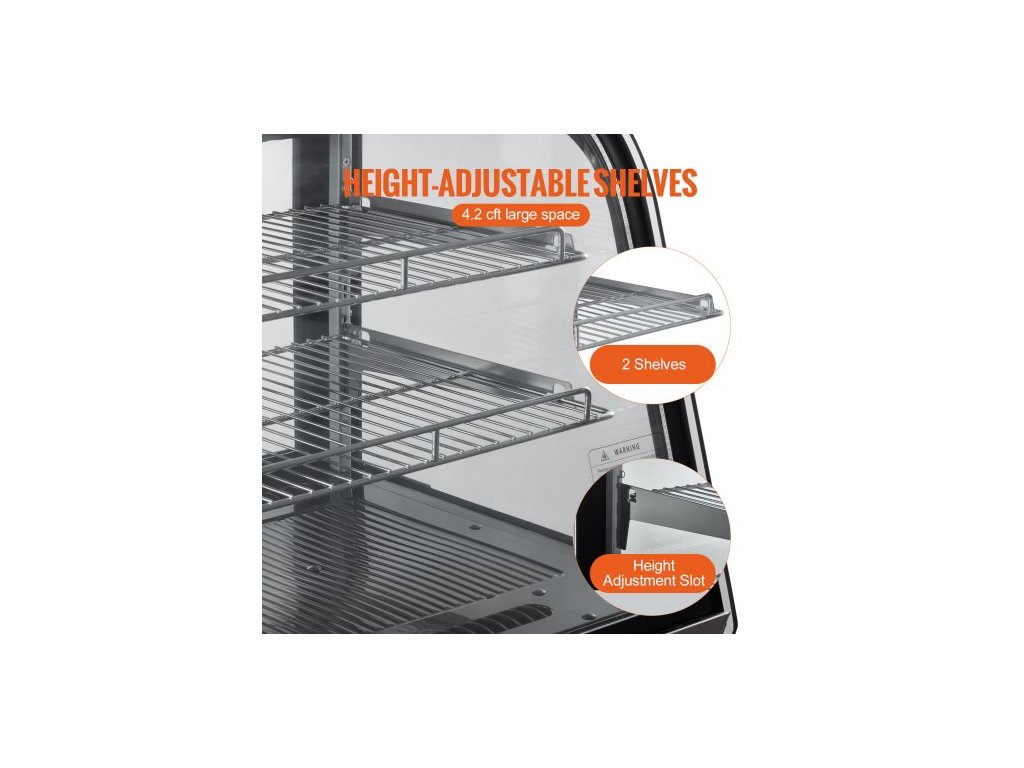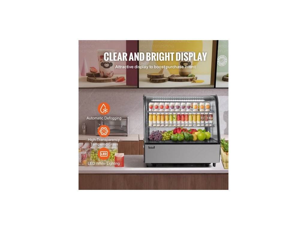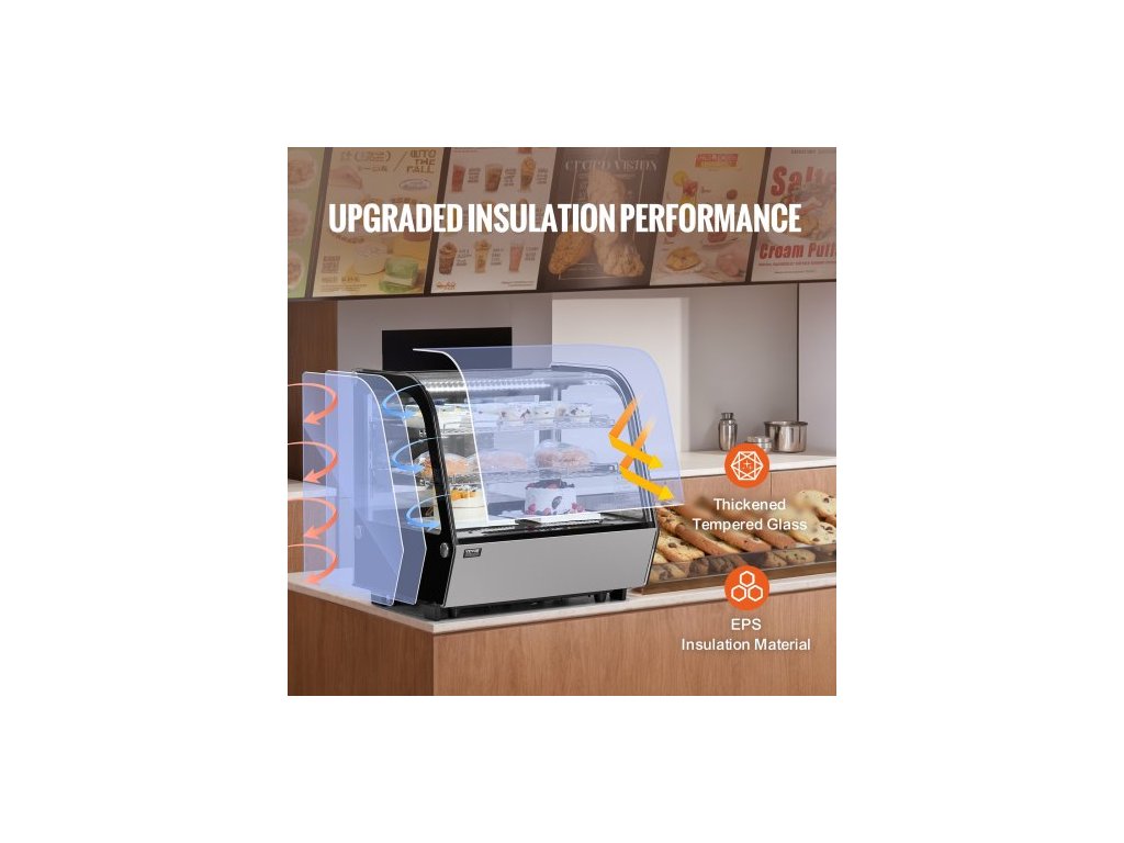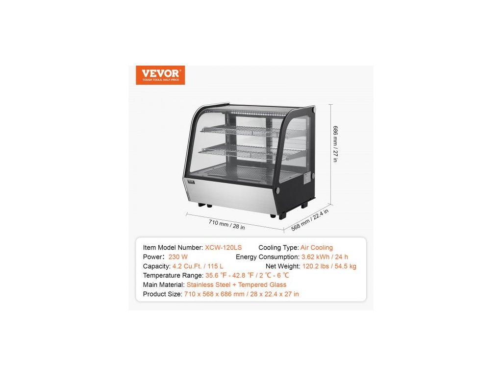 Chladicí vitrína , pultní vitrína na pečivo o objemu 4,2 kubických stop/115 l, 2patrová komerční chladnička s LED osvětlením, TURBO chlazení, beznámrazové chlazení vzduchem, pro pekárny