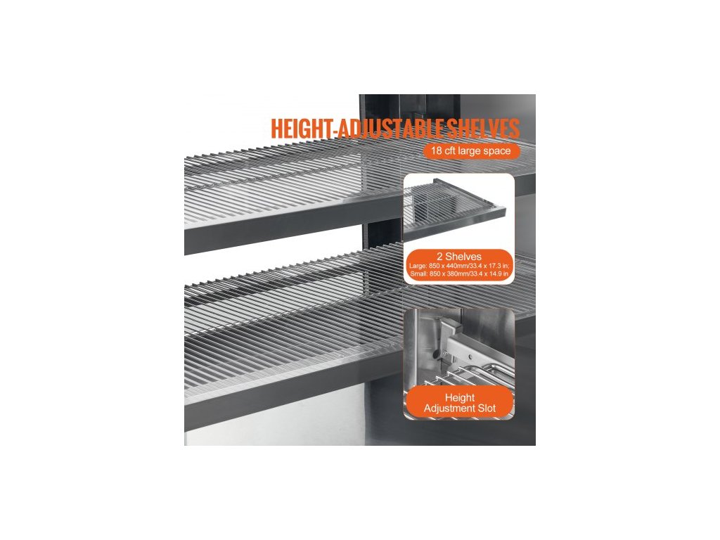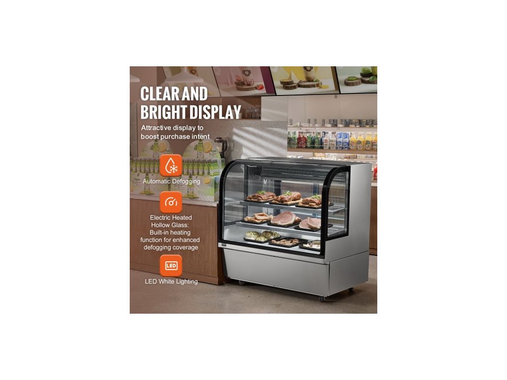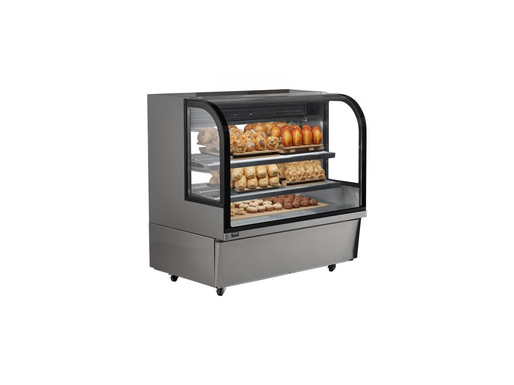 Chladicí vitrína , velká vitrína na pečivo o objemu 505 l, 2patrová komerční chladnička s LED osvětlením, chlazením směrem dolů, pojízdná s kolečky, pro pekárny