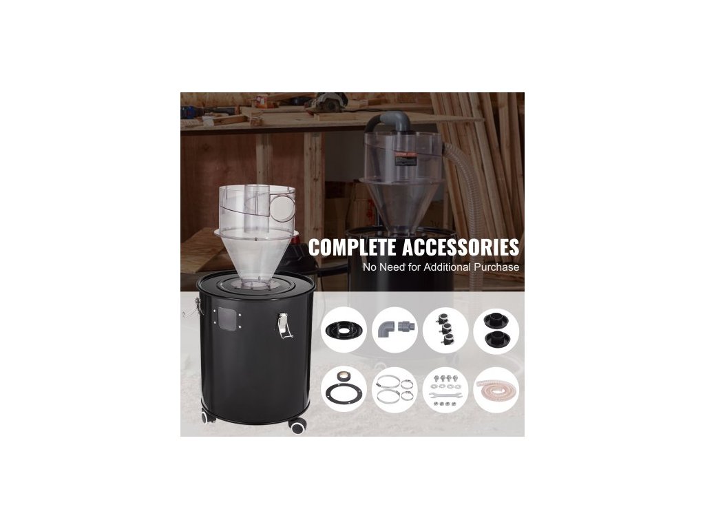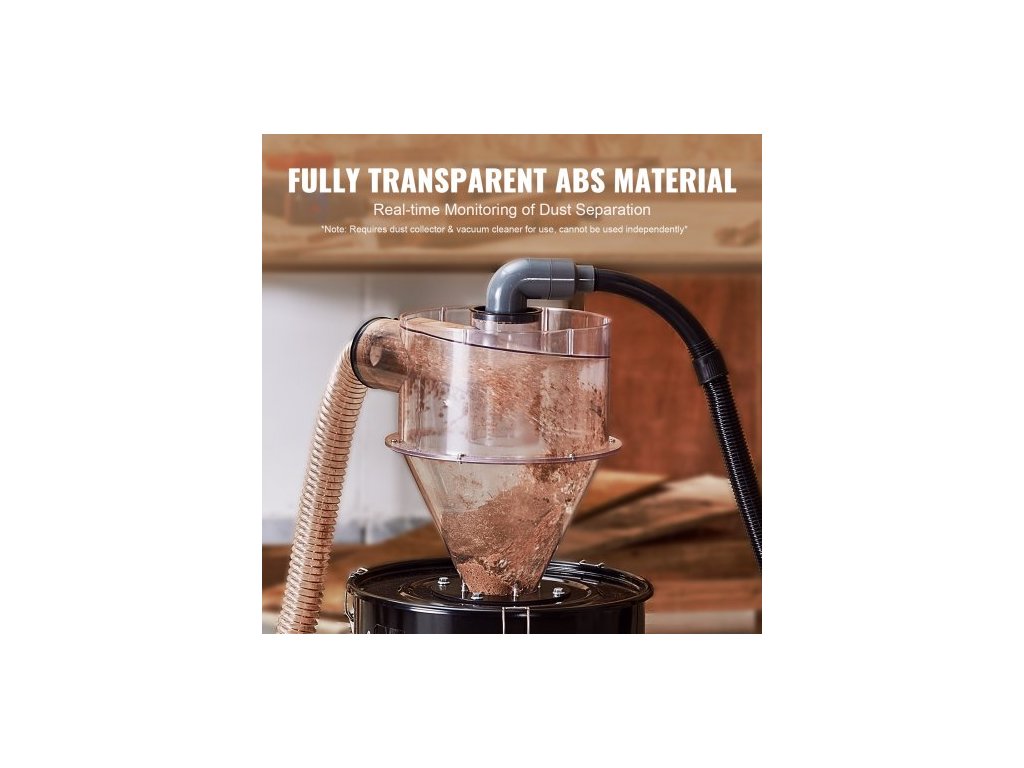 Cyklonový odlučovač prachu s kovovou nádrží, dodatečná montážní sada cyklónového odlučovače 4" pro odlučovače prachu, ABS plast s vnějším průměrem otvoru 2". Konektor a hadice pro mokré/suché vysavače do dílen, pasuje na 50l nádrž