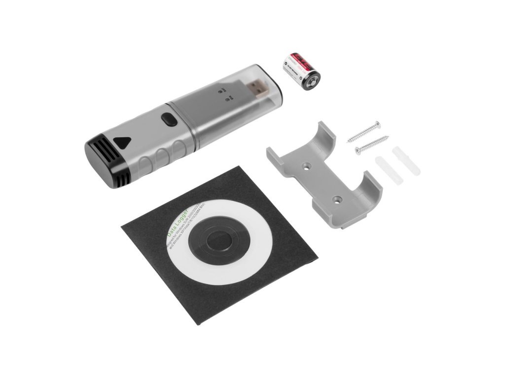 Vedle baterie a softwaru je součástí dodávky také držák na stěnu. Lehký a přenosný záznamník teploty a vlhkosti vzduchu je napájen jednou lithiovou baterií 3,6 V. Po skončení měření jednoduše spojíte měřidlo se svým počítačem a hravě do něj přenesete naměřená data pro jejich vyhodnocení. Software vám nabízí atraktivní grafická znázornění vámi naměřených hodnot a analýz.