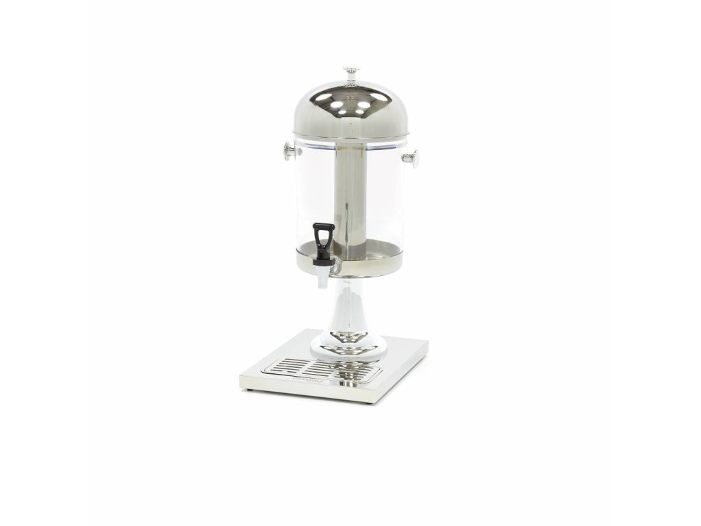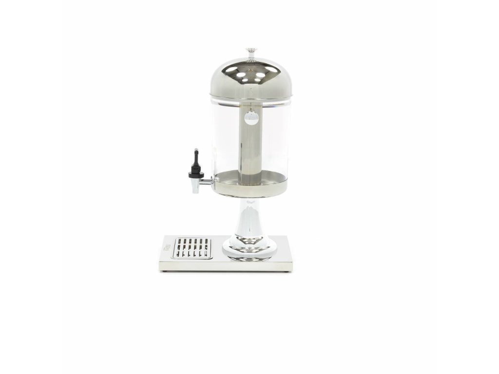 MX Dávkovač nápojů / džusů 1 x 8 l, Dávkovač nápojů / džusů MX má kapacitu 8 litrů, takže můžete přímo servírovat velké množství džusu. Přístroj se snadno chladí pomocí nerezové trubice, kterou lze naplnit ledem. 1 x 8L nápojový / džusový automat, Nerezové pouzdro s průhlednou nádobou, 100% bez BPA, Moderní design s robustní nohou, Praktické rukojeti pro zvedání automatu, Snadno čistitelná odkapávací miska, Vybavený chladicí trubicí z nerezové oceli, Snadná demontáž, Vhodný pro sklenice do 15 cm, Čistá hmotnost: 2,8 kg, Rozměry: