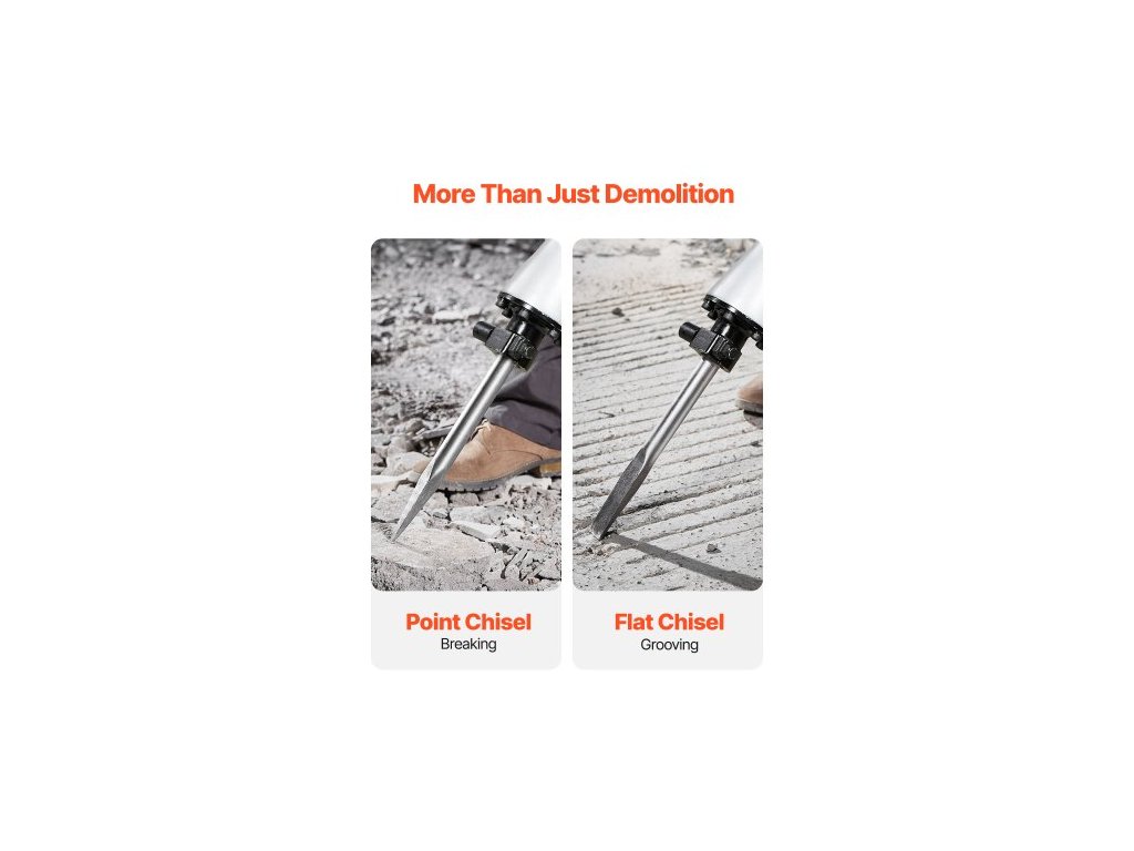 Demolition Jack Hammer, výkonné elektrické sbíjecí kladivo 2800 W, 1200 úderů za minutu, bourací kladivo na beton s hrotovým sekáčem, plochým sekáčem, přepravním pouzdrem, rukavicemi, na beton, zdi, cihly, dlaždice a základy