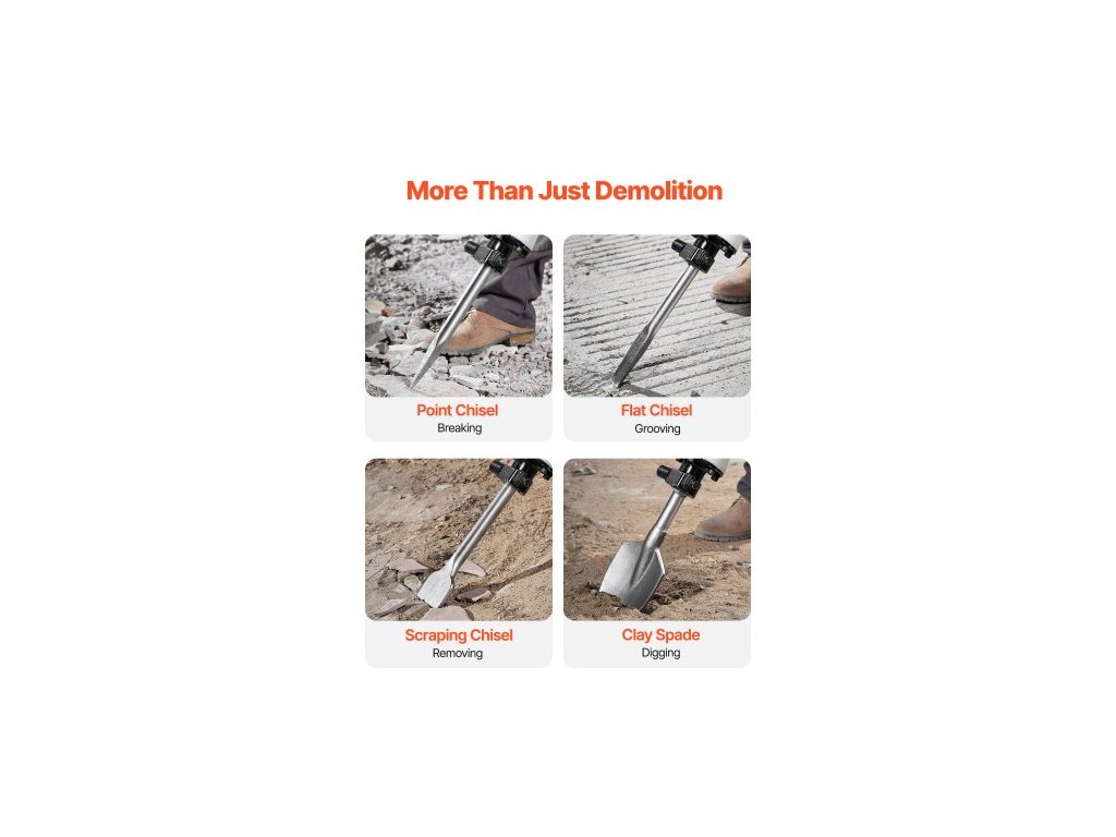 Demolition Jack Hammer, výkonné elektrické sbíjecí kladivo 2800 W, 1200 úderů za minutu, bourací kladivo na beton se 3 sekáči, rýčem na hliněnou hlínu, přepravním kufříkem, rukavicemi, na beton, zdi, cihly, dlaždice a základy