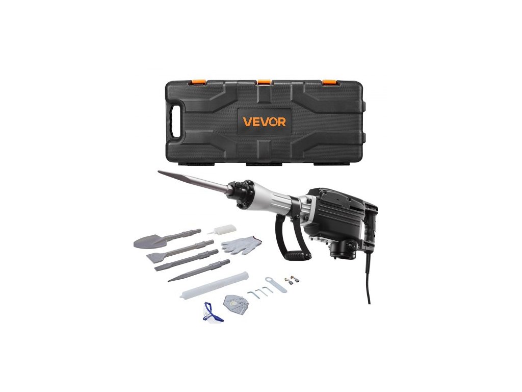Demolition Jack Hammer, výkonné elektrické sbíjecí kladivo 2800 W, 1200 úderů za minutu, bourací kladivo na beton se 3 sekáči, rýčem na hliněnou dlažbu, přepravním pouzdrem, rukavicemi, na beton, zdi, cihly, dlaždice a základy