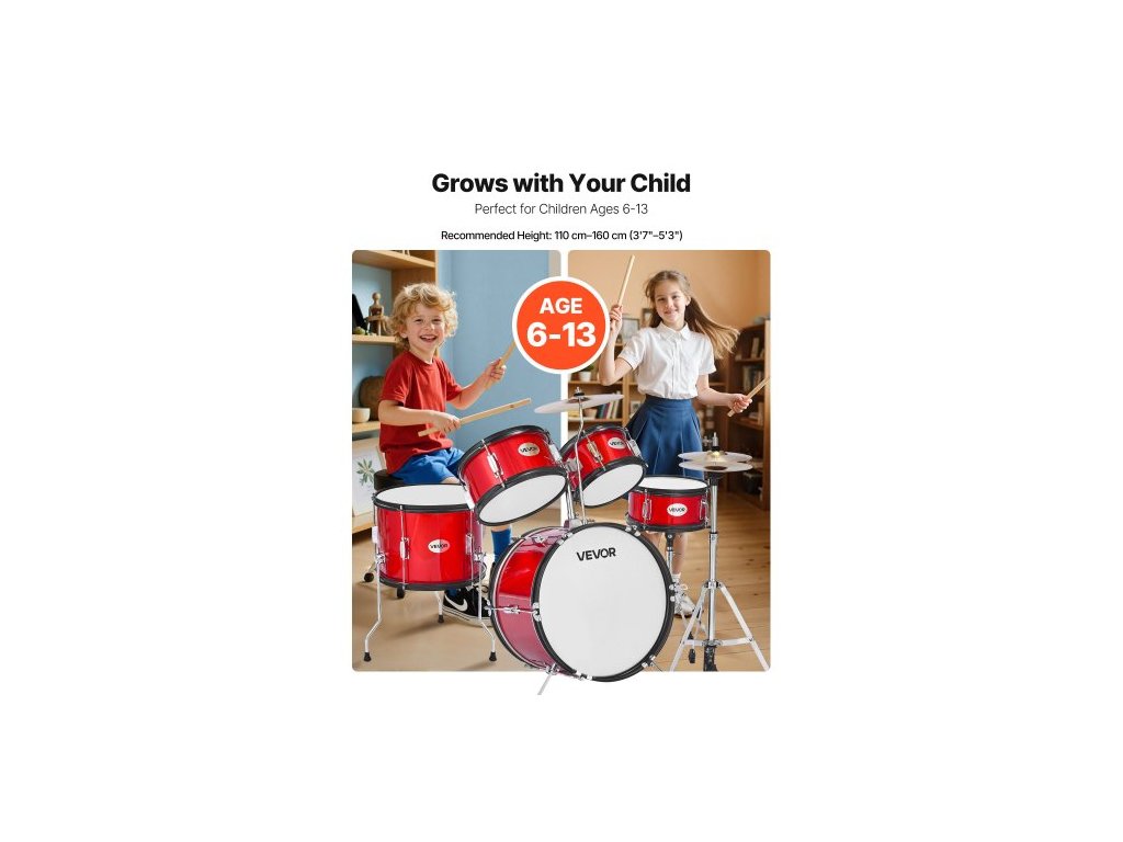 Dětská bicí sada , 5dílná sada pro začátečníky o průměru 406,4 mm, s nastavitelným trůnem a dvěma páry paliček, sada hudebních bicích nástrojů pro učení, pro děti ve věku 6-13 let (červená)
