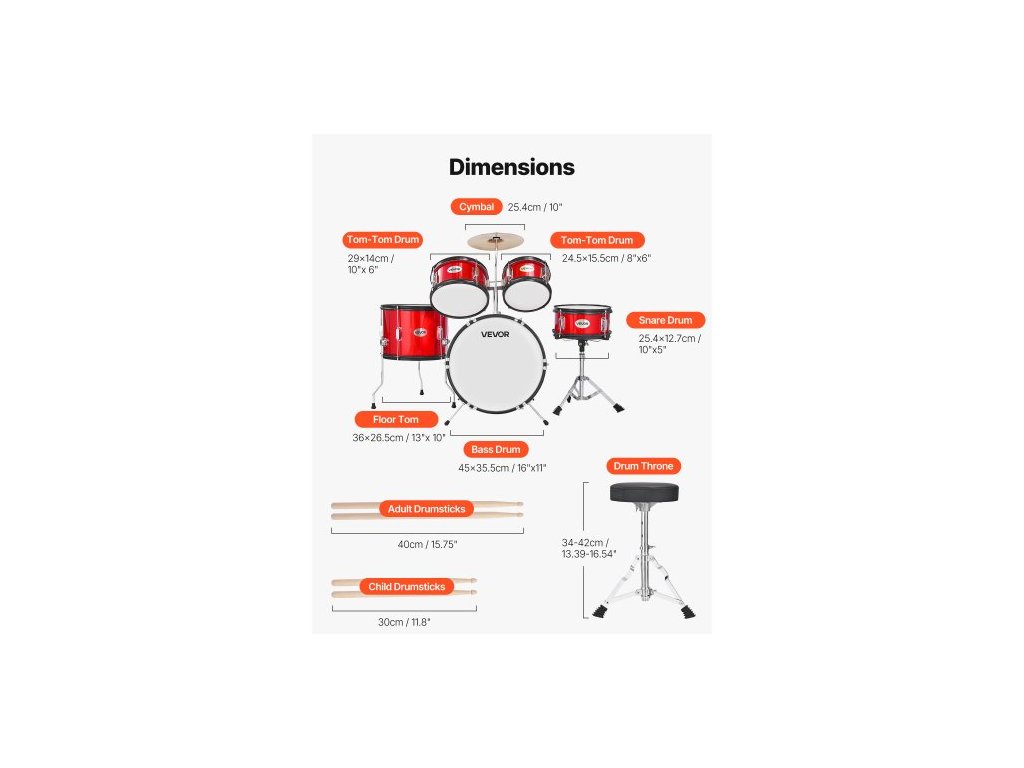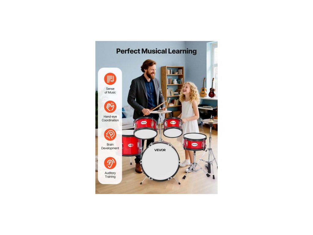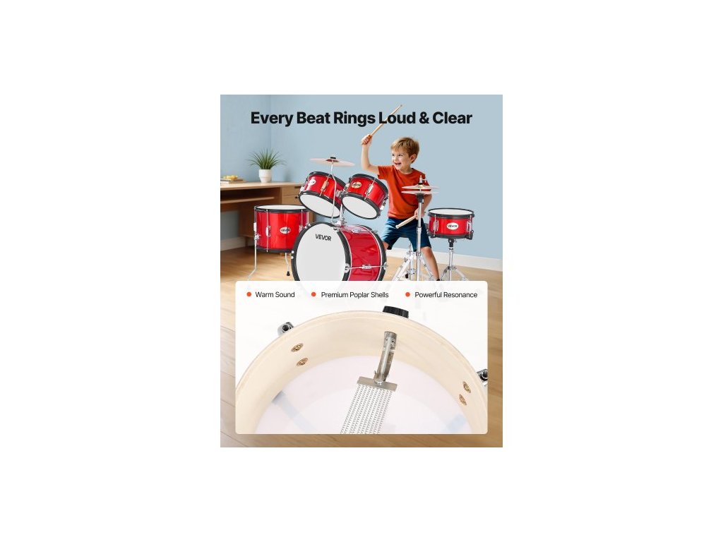 Počet bubnů: 5, Barva: Červená, Číslo modelu: SH-002-RD, Čistá hmotnost: 16,85 kg, Hlavní materiál: Topol, PET, uhlíková ocel