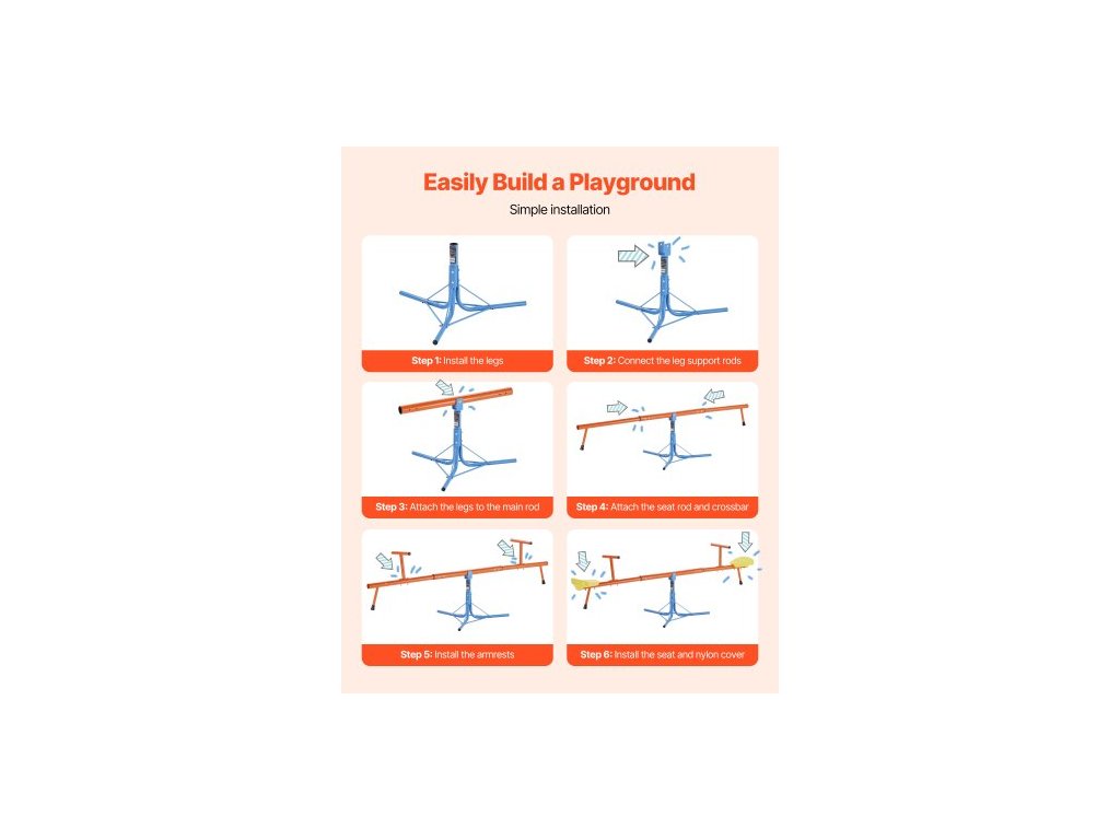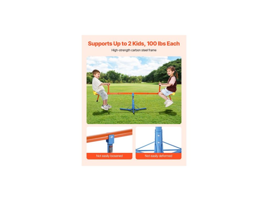 Doporučený věk: 3+, Maximální nosnost: 45,4 kg na sedadlo, Otočné: Ano, otáčení o 360°, Číslo modelu položky: 84019-1, Kapacita sedadla: 2 sedadla, Povrchová úprava: Práškové lakování, Tvar nohou: 3-hroté podpěrné nohy, Materiál: Uhlíková ocel + PE, Rozměry výrobku: 75,00 x 24,41 x 25,98 palce / 1905 x 620 x 660 mm, Čistá hmotnost: 5,3 kg