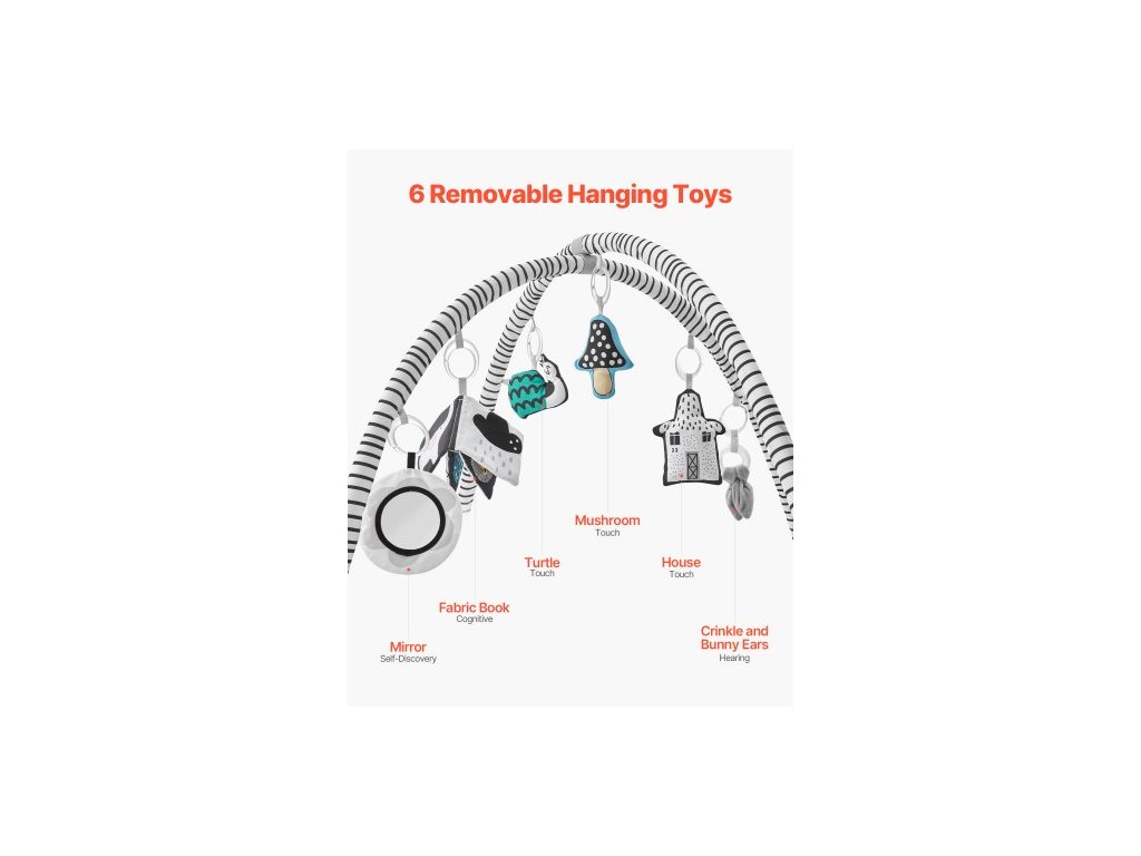 Dětská hrací podložka na cvičení, podložka na bříško s 6 odnímatelnými senzorickými hračkami, velká podložka pro novorozence o rozměrech 41,7" x 41,7" se skládacími boky a měkkou látkou pro rozvoj senzorických a motorických dovedností