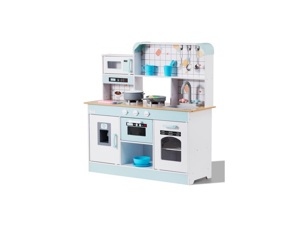 Barva: Bílá, Číslo modelu položky: TLG81021, Hmotnost výrobku: 14,4 kg, Styl: Integrovaný design, Realistické kuchyňské nádobí a jídlo: 24 ks, Materiál: Dřevo (melaminová deska), Specifikace baterií: 6 x 1,5V knoflíkové baterie, Rozměry výrobku: 88,6 x 31,7 x 90,4 cm