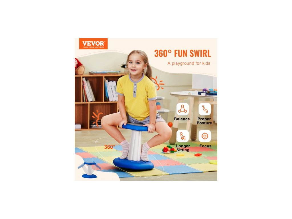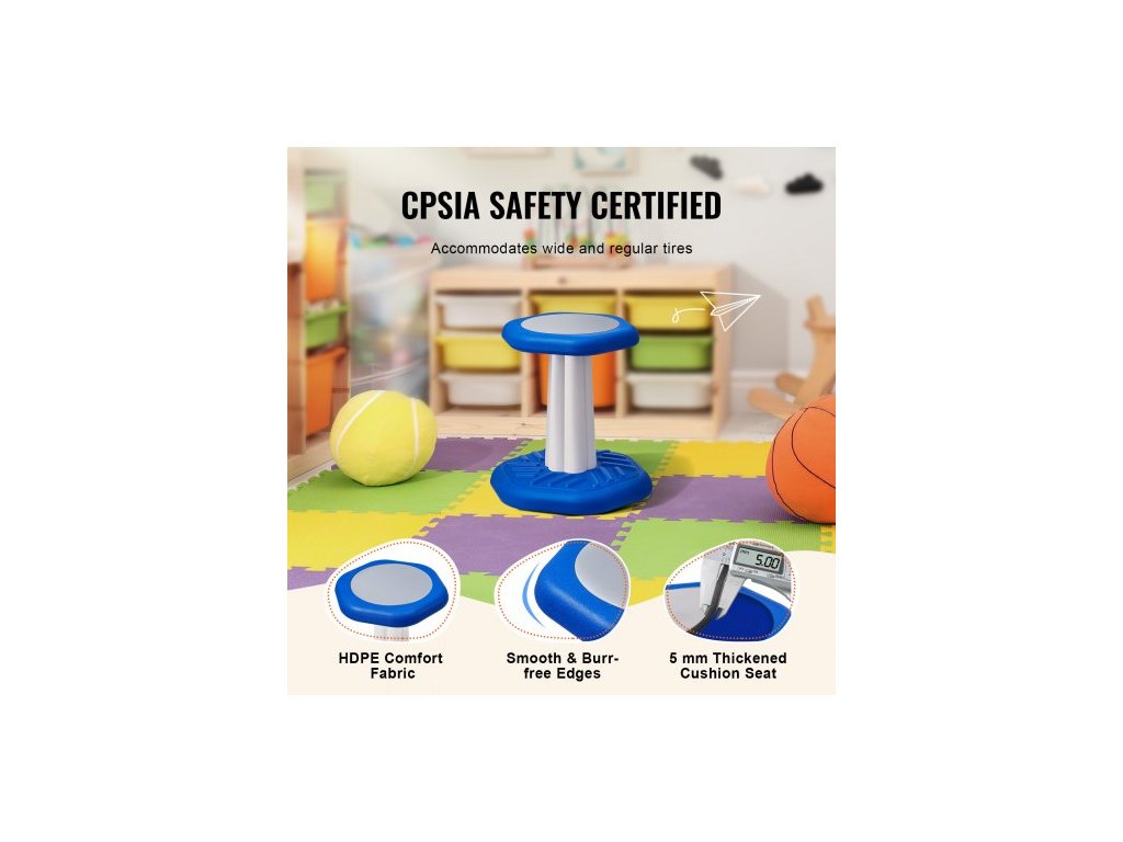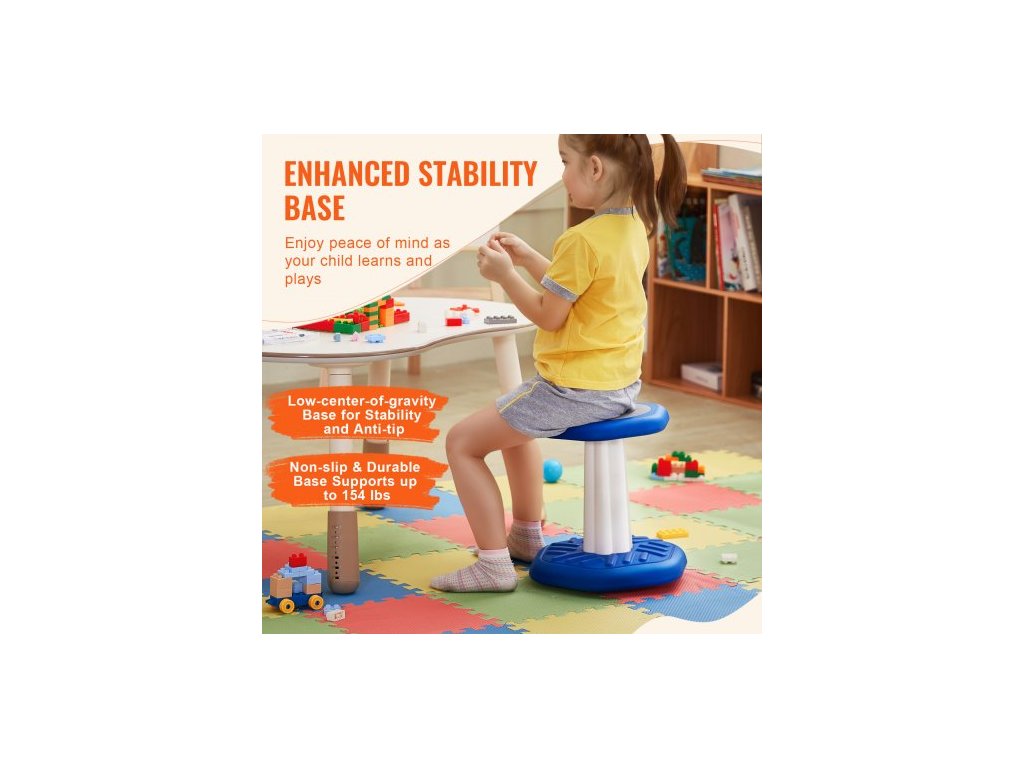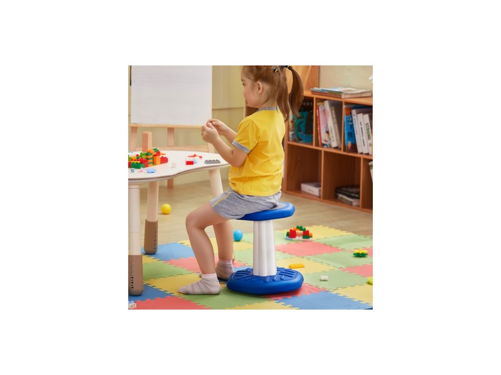 Dětská kyvadlová židlička , aktivní židlička s houbovým polštářem, kyvadlová stolička zlepšuje soustředění, držení těla a uklidňuje děti, ideální pro školy a předškolní zařízení, věk 3-7 let, modrá