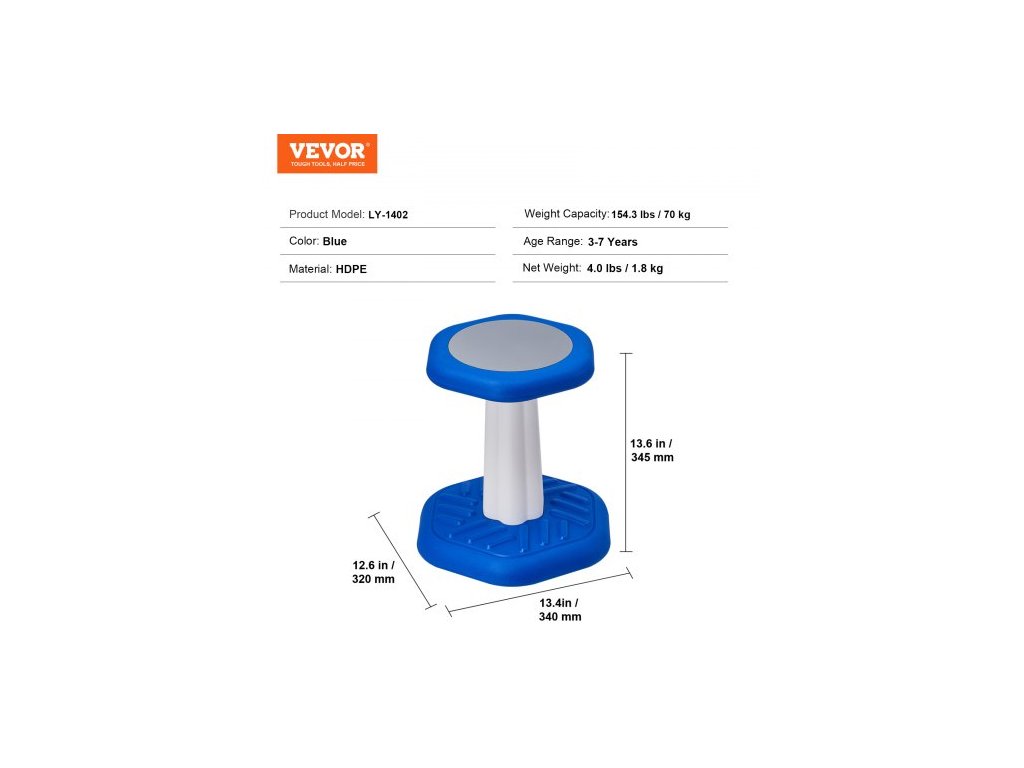 Nosnost: 70 kg, Věkové rozmezí: 3-7 let, Barva: Modrá, Model produktu: LY-1402, Materiál: HDPE, Rozměry produktu: 340 × 320 × 345 mm, Čistá hmotnost: 1,8 kg