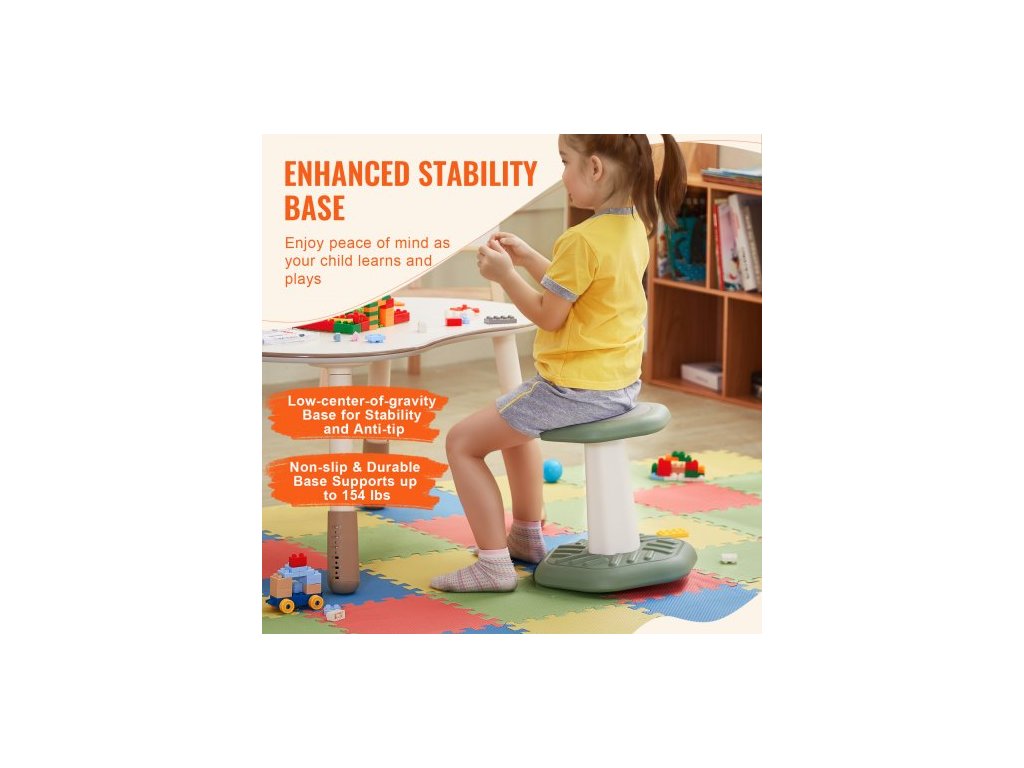 Dětská kyvadlová židlička Aktivní židlička s houbovým polštářem, kyvadlová stolička zlepšuje soustředění, držení těla a uklidňuje děti, ideální pro školy a předškolní zařízení, věk 3-7 let, zelená