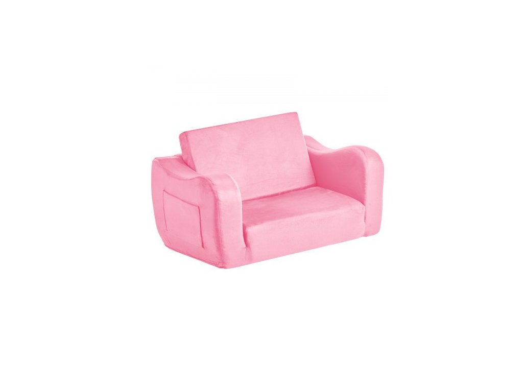 Dětská pohovka 2 v 1, skládací měkká pohovka pro batolata s područkami, vyrobeno z houbičky 28D a krátkého vlasu, přeměnitelné křeslo pro batolata na lehátko, dětská pohovka se dá rozložit pro zábavné hraní nebo pohodlné lenošení, M, růžová