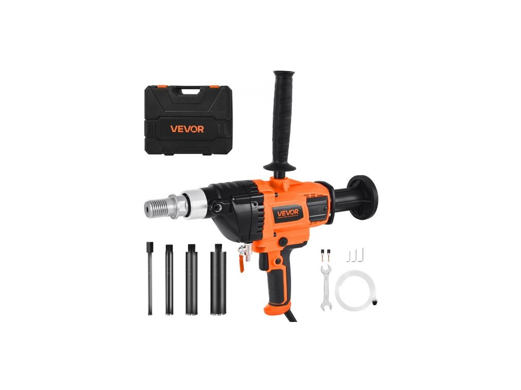 Diamantová jádrová vrtačka , průměr vrtání 20–160 mm, ruční suchá i mokrá jádrová vrtačka do betonu se 4 vrtáky, variabilní otáčky 0–1800 ot./min, UNC1 1/4–7, pro beton, cihly, kámen, 2000 W, bezpečnostní spojka, ochrana proti přetížení, účinný odvod tepla, systém mokrého vrtání, robustní konstrukce, všestranné použití, výkon bez zatížení: 900 W, průměr vrtání do cihel: 20–160 mm, průměr vrtání do betonu: 20–83 mm, velikost výstupní hřídele: vnější závit UNC1 1/4–7, maximální výkon při zatížení: 2000 W, hmotnost bez zátěže (pouze stroj): 5,4 kg, hmotnost bez zátěže (včetně Příslušenství): 32,6 lbs/14,8 kg, Typ: Ruční, Dodávané vrtáky: 4 kusy, Velikost přívodu vody: Hrotový spoj, Vnější průměr 0,4 palce/9 mm, Číslo modelu položky: Z1Z-CF-9150, Otáčky bez zatížení: 0–1800 ot./min. Variabilní rychlost, Rozměry výrobku (D x Š x V): 13,0 x 9,8 x 3,9 palce/330 x 250 x 100 mm