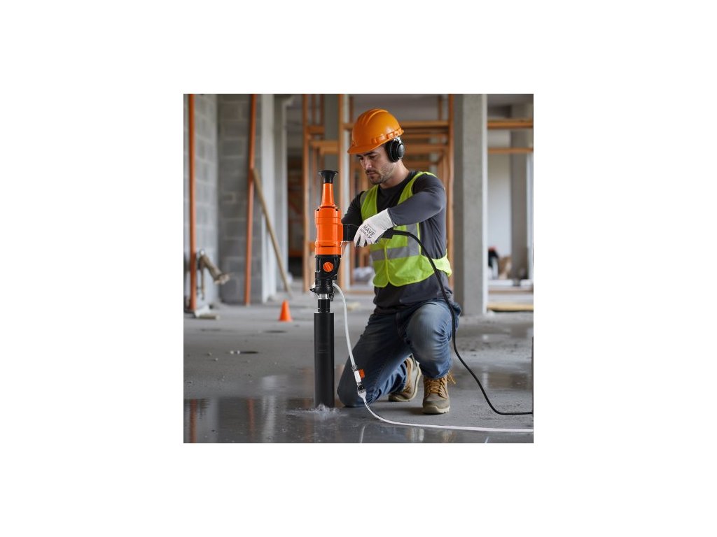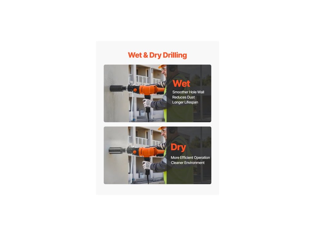 Diamantová jádrová vrtačka , průměr vrtání 200 mm, ruční suchá i mokrá jádrová vrtačka do betonu se 4 vrtáky, 1000/2250 ot./min., 2 rychlosti, závit UNC1 1/4-7, pro beton, cihly, kámen, 1500 W