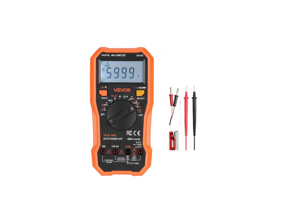 Digitální multimetr , 6000bodový TRMS DC/AC voltmetr, tester proudu, profesionální NCV multimetr pro měření proudu, napětí, odporu, kapacity, pracovního cyklu, teploty, diod, kontinuity vodičů pod napětím