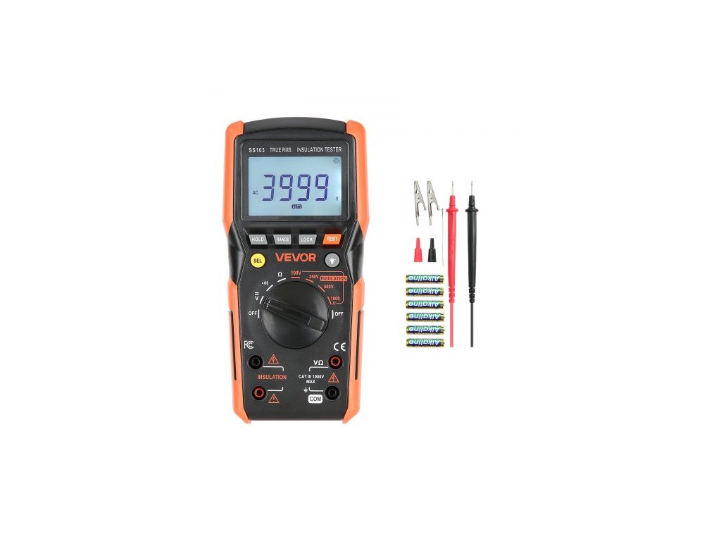 Digitální multimetr , voltmetr/ohmmetr s 4000 měřenými hodnotami TRMS, tester napětí 1000 V AC/DC s přepínatelným automatickým/manuálním rozsahem pro měření napětí, odporu a kontinuity
