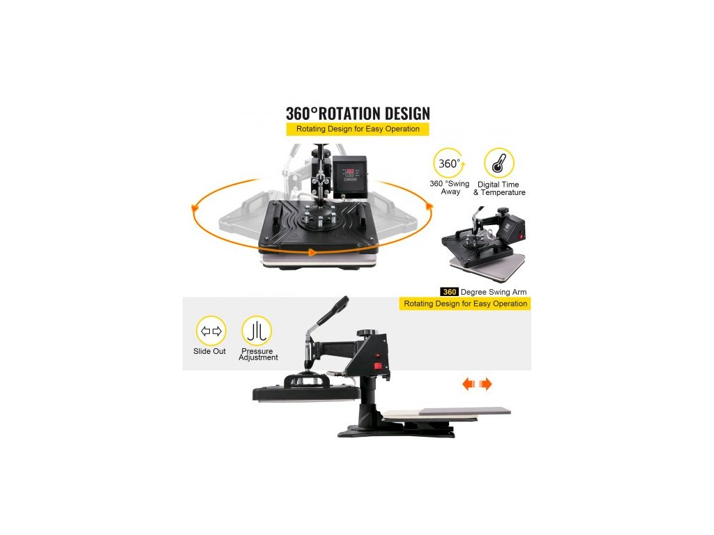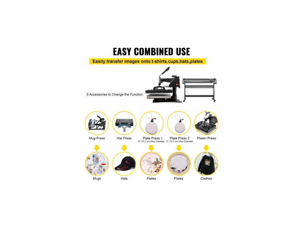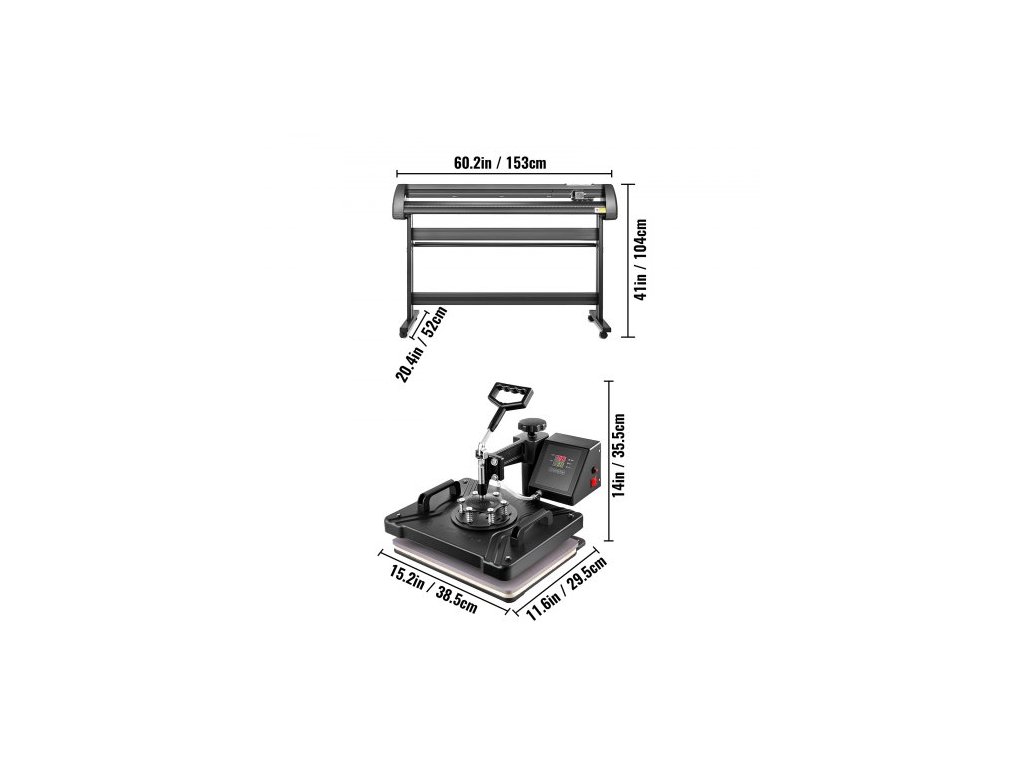 Tlakový lis č. 1: maximální průměr 5" / 12,7 cm, časovač: 0 - 999 sekund, model termolisu 5 v 1: multifunkční 5 v 1, lis na desky č. 2: maximální průměr 6" / 15,2 cm, paměť: 2 MB, přesnost opakování: 0,0004" / 0,01 mm, příkon: 1200 W, lis s deskou (s teflonovým povlakem): 12" x 15" / 29 x 38 cm, přítlak řezačky: 10-500 g, rychlost řezání: 10-800 mm za sekundu,Max. posuv papíru: 53,1" / 1350 mm,Lis na klobouky/čepice: 6" x 3" / 15 x 7,6 cm (zakřivený),Nastavitelná výška: 13,5"-17" / 34,3-43,2 cm,Teplotní rozsah: 200-450 °F / 95-232 °C,Model řezačky vinylu 53": 53 palců,Max. šířka řezačky: 49,6" / 1260 mm,Lis na hrnky: 3"-3,5" / průměr 7,6 x 8,9 cm (11 OZ),Příkon: 110 V